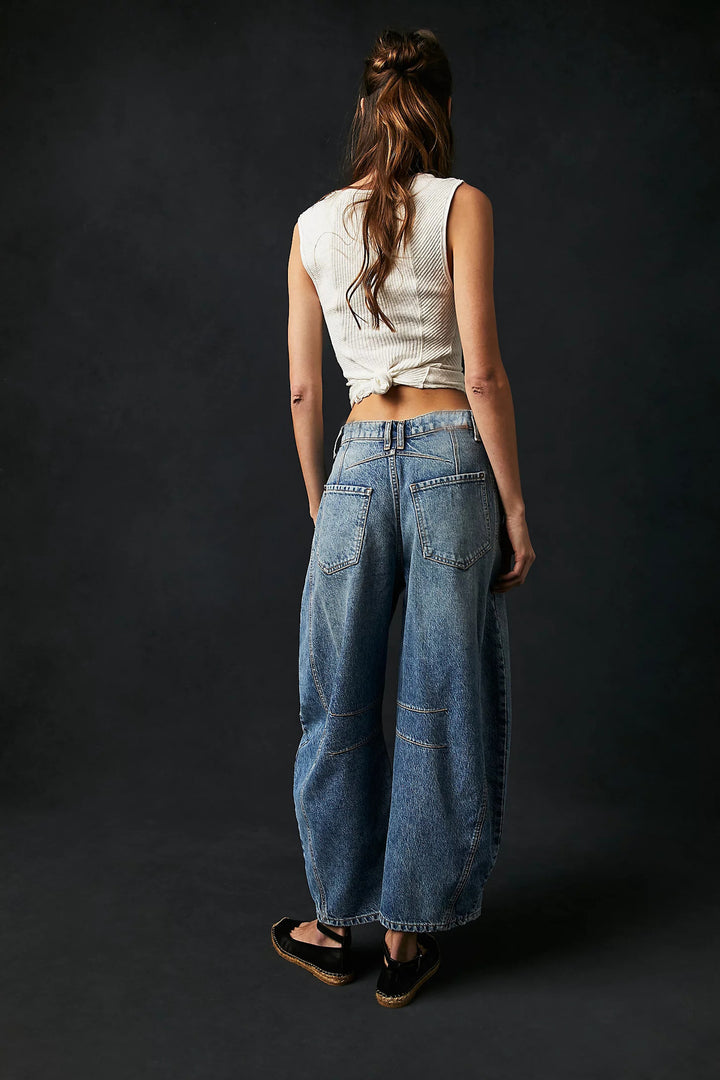 Spring Fashion Versatile Low-Waisted Loose Straight Denim Pant for Women