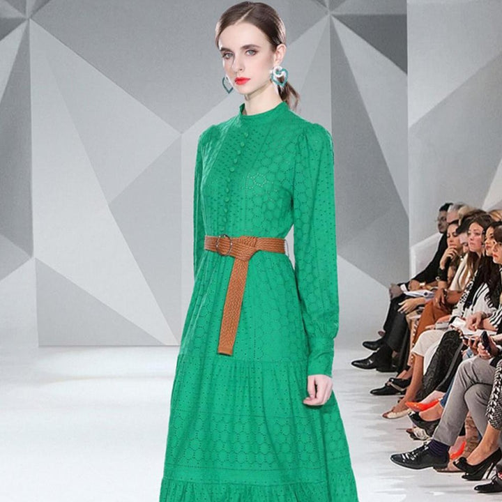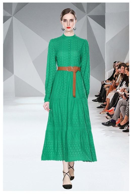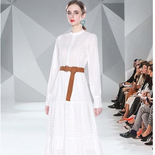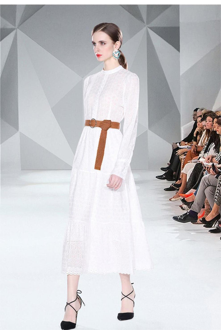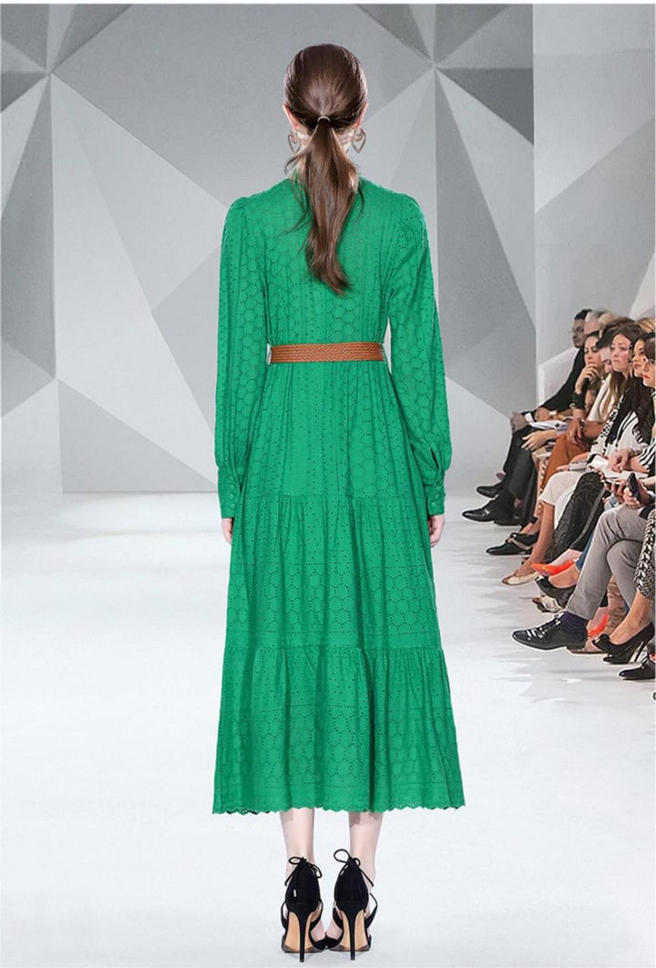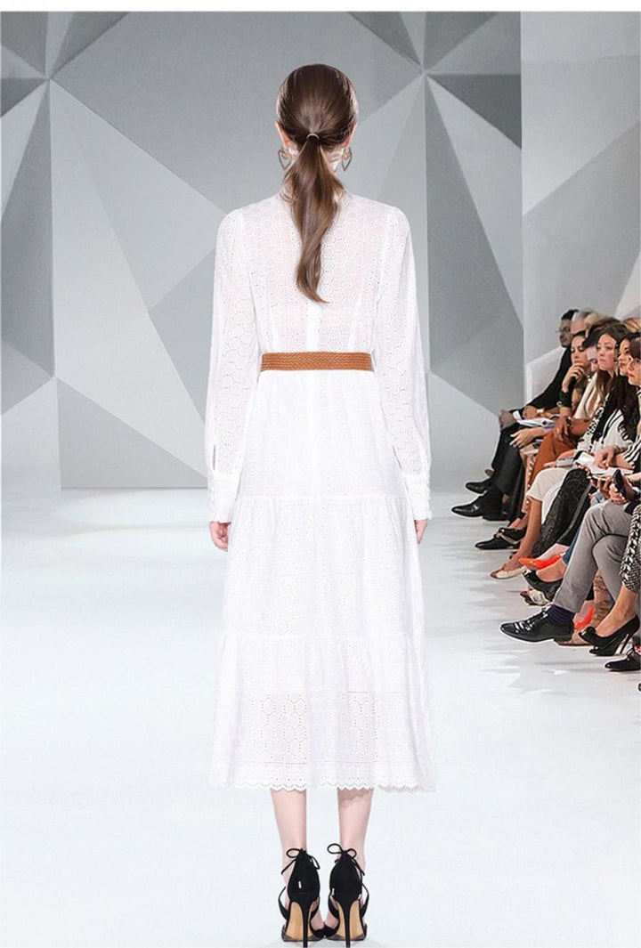Spring Long Sleeve Hollowed Out Heavy Industry Embroidery Dress