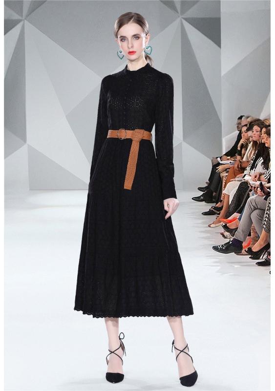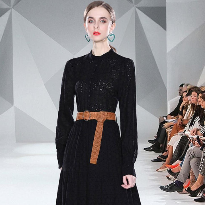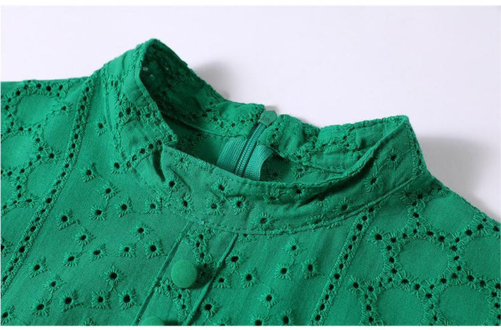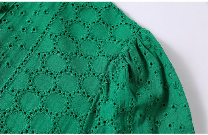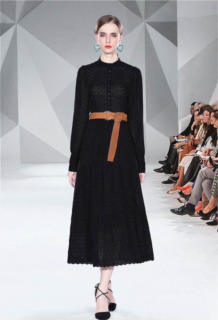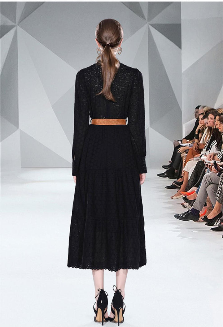 Spring Long Sleeve Hollowed Out Heavy Industry Embroidery Dress