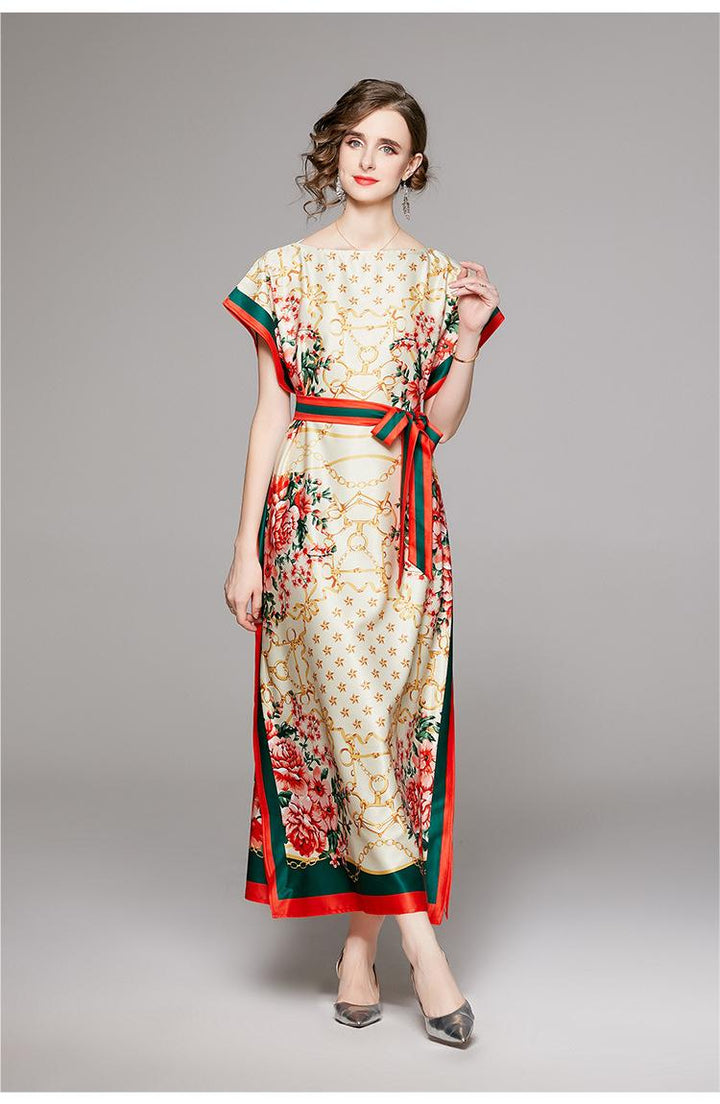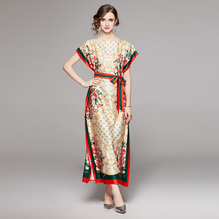 Stylish One-Line Neck Loose Lace-Up Dress With Belt
