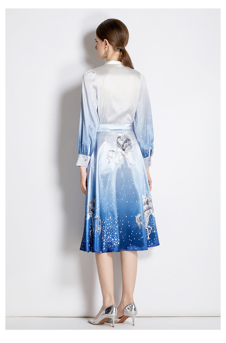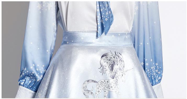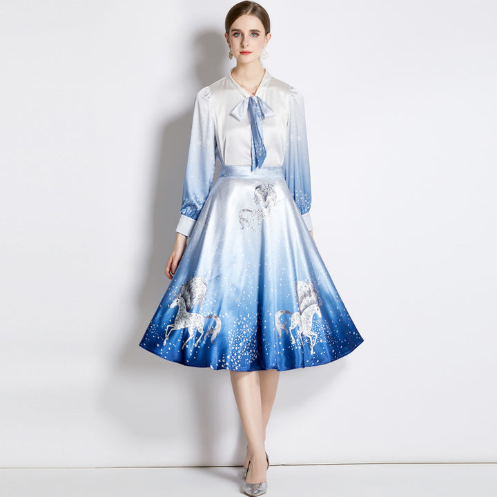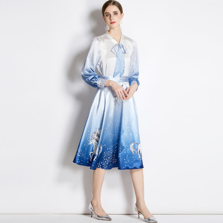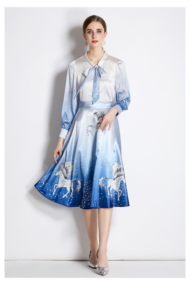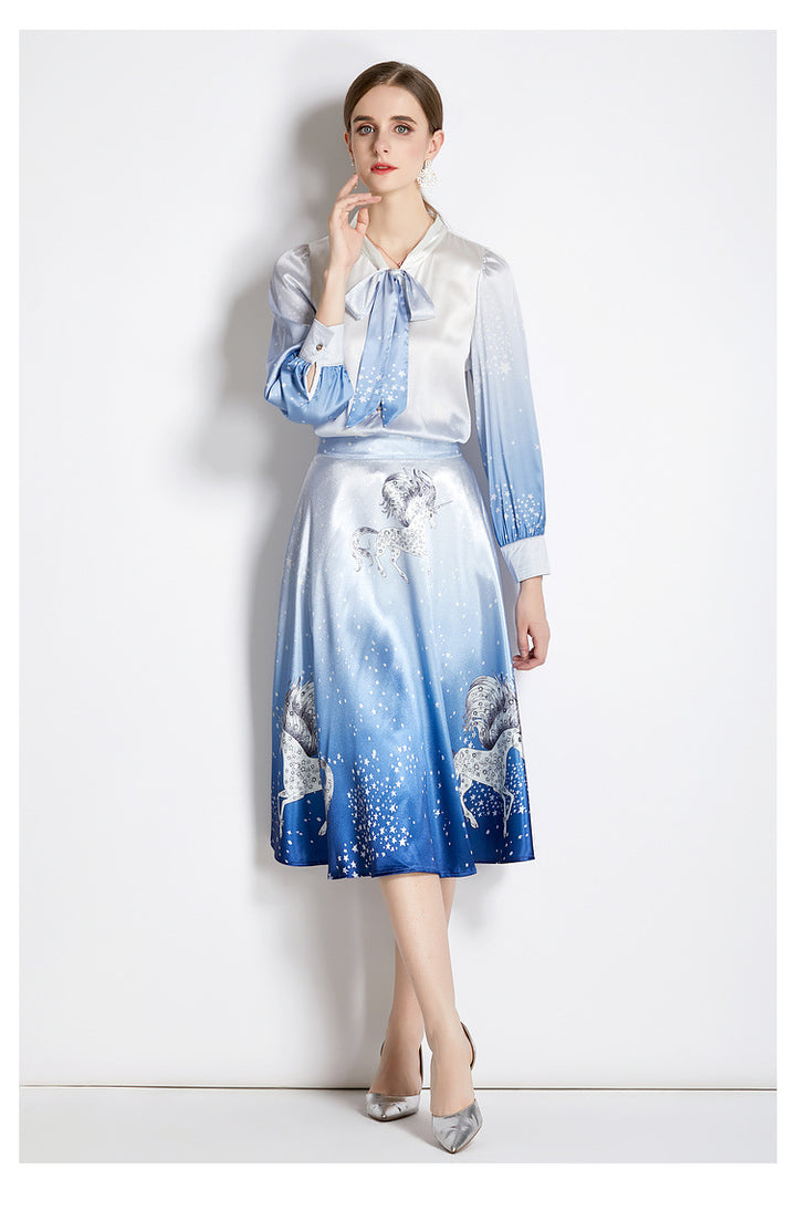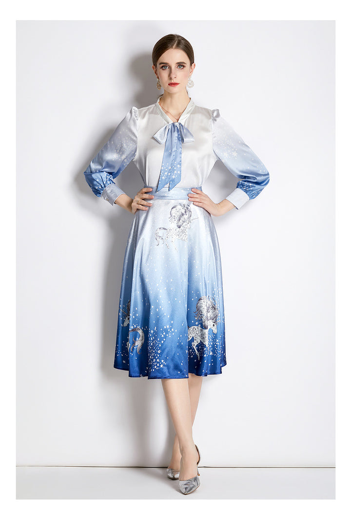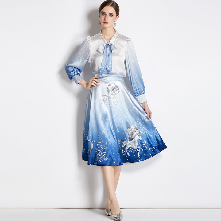 Stylish Top and Skirt Two-Piece Satin Mid-Length Suit