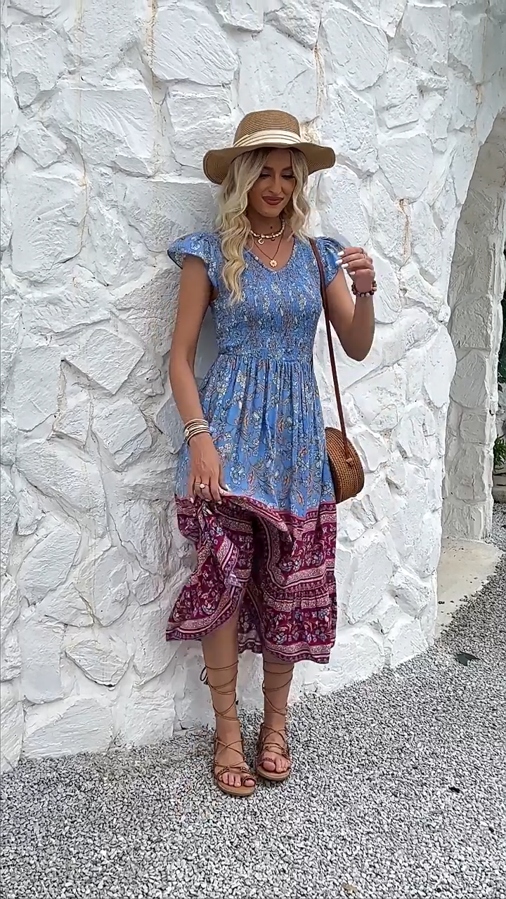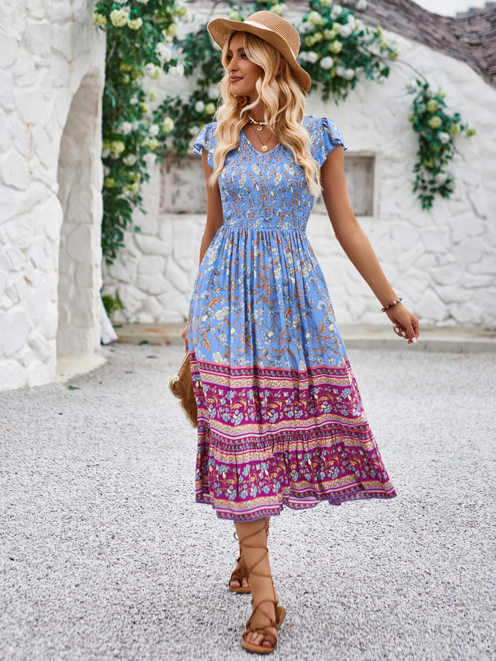 Summer Casual Printed Waisted Loose Boho Long Holiday-Style Dress for Women