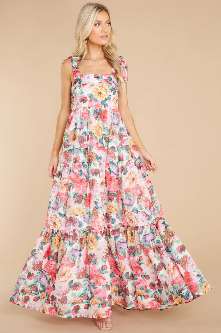 Summer Elegant Sweet Printed Waisted Long Slip Dress for Women