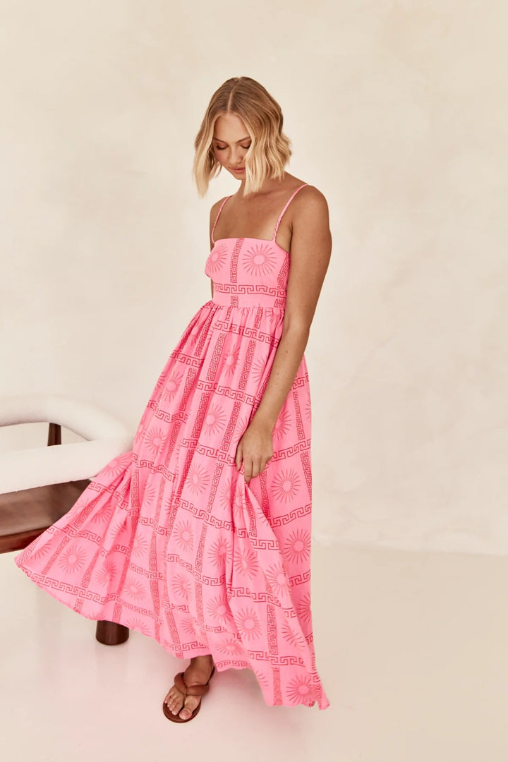 Summer Fashion Casual Cutout Printed Waisted Long Slip Dress for Women