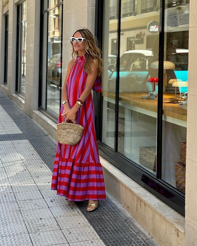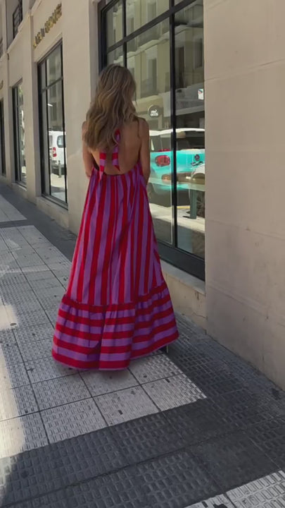 Summer Fashion Casual Striped Open-Back Holiday-Style Halter Dress for Women