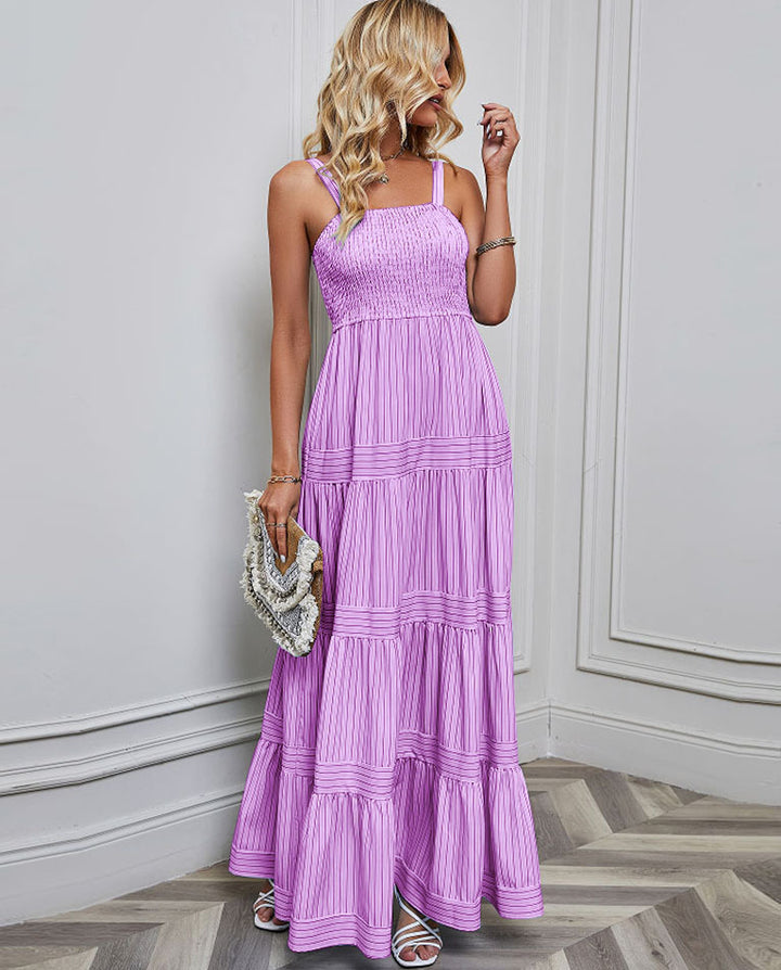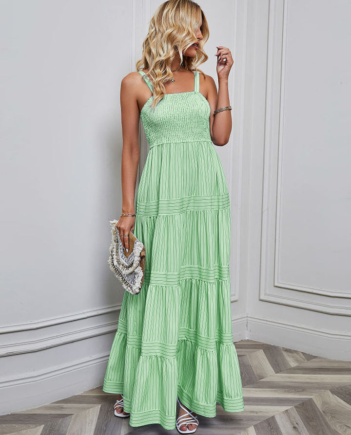 Summer Fashion Casual Striped Waisted Holiday-Style Slip Dress for Women