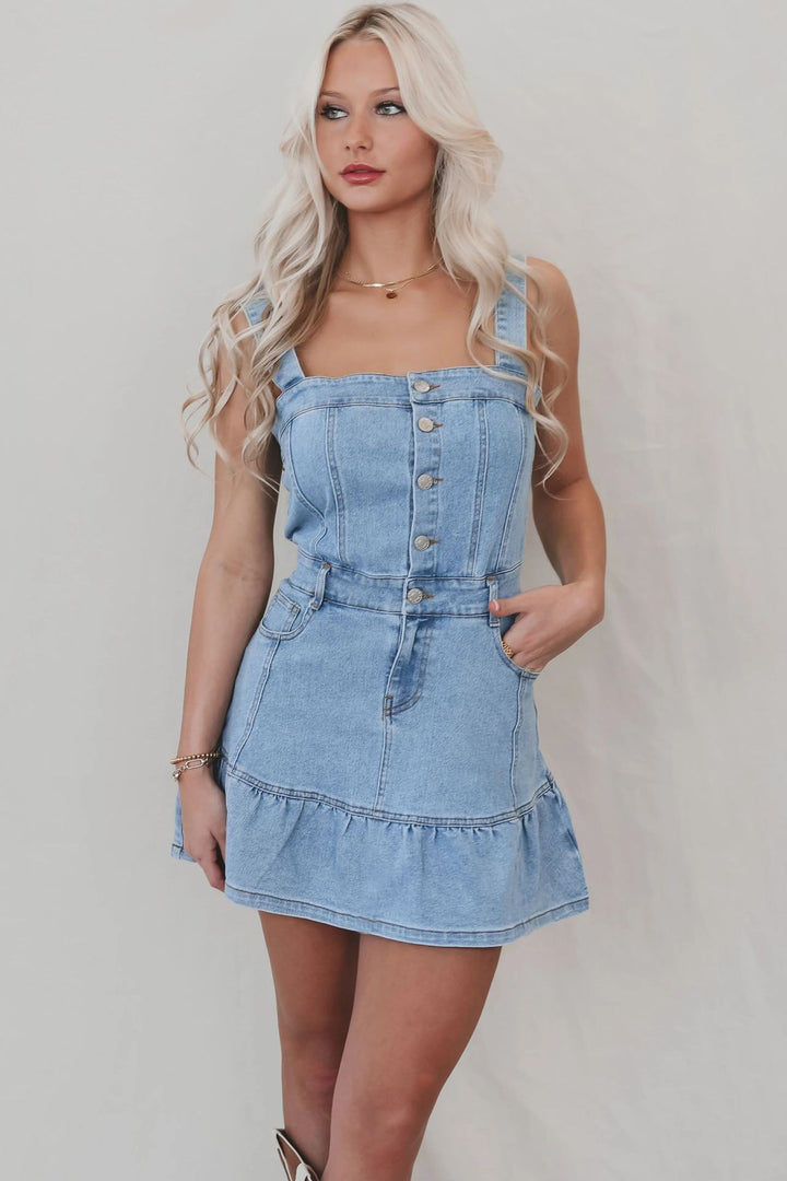 Summer Fashion Daily Sexy Square-Neck Waisted Short Slip Denim Dress for Women