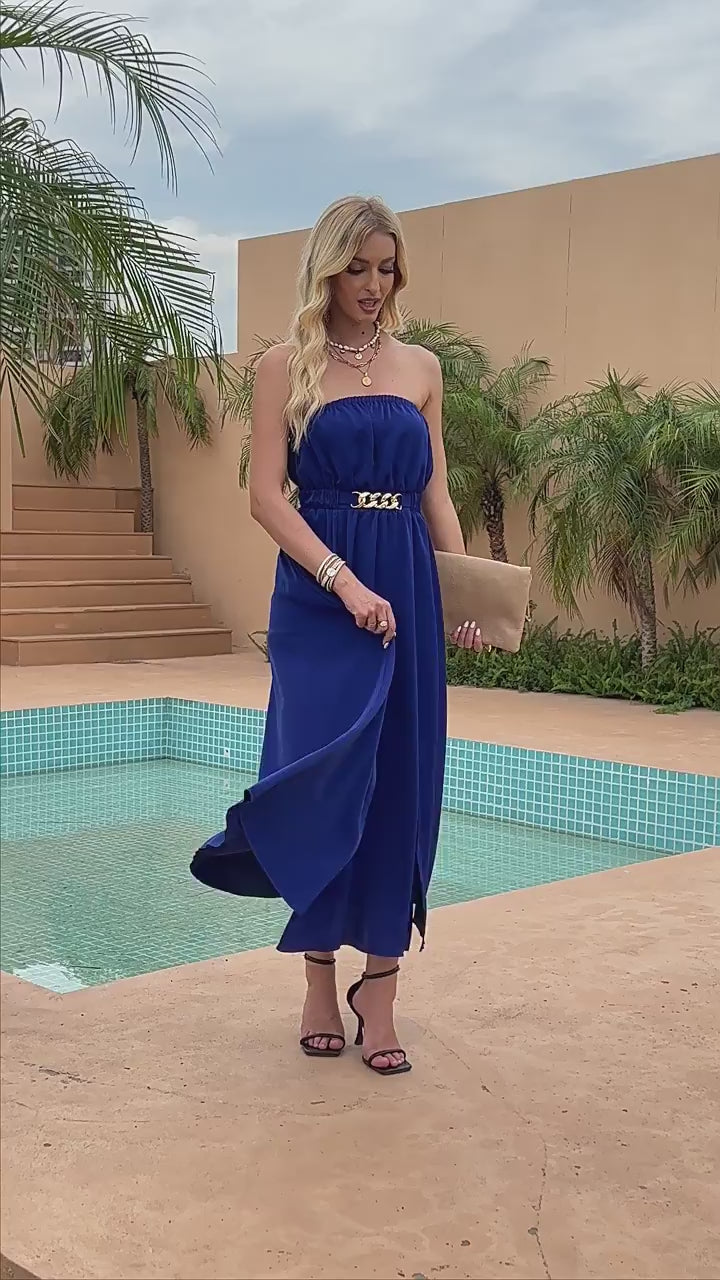 Summer Fashion Sexy Elegant Slit Waisted Long Strapless Dress for Women