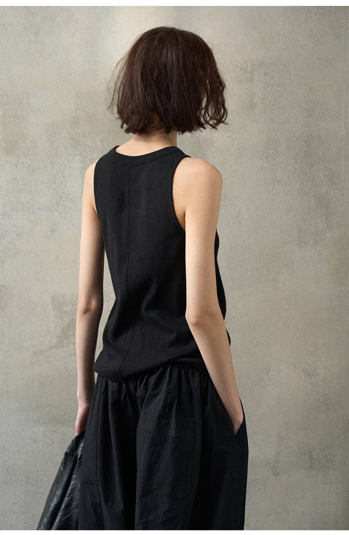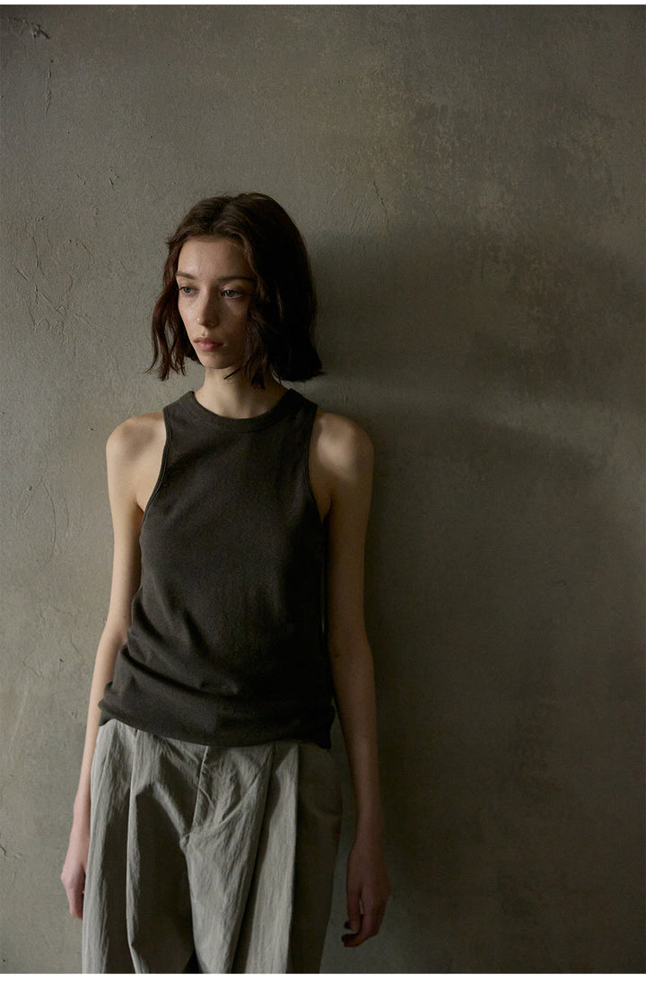 Summer Fashion Trend Round Neck, Solid Color, Pure Cotton Women Top