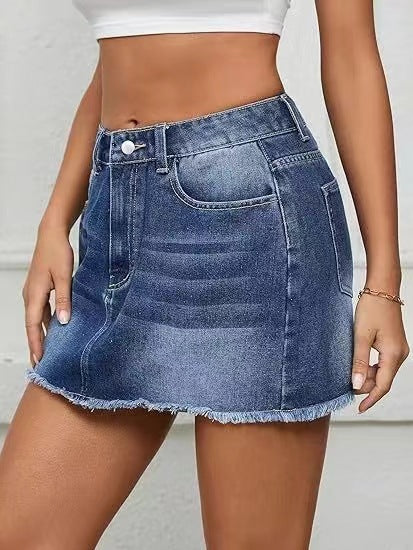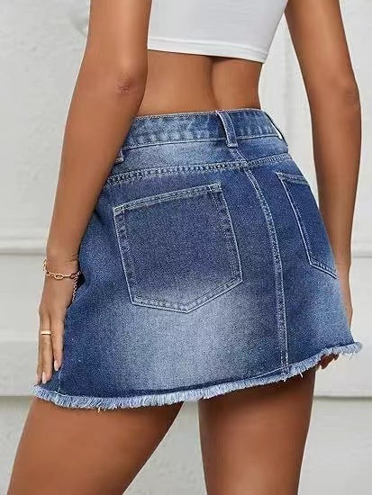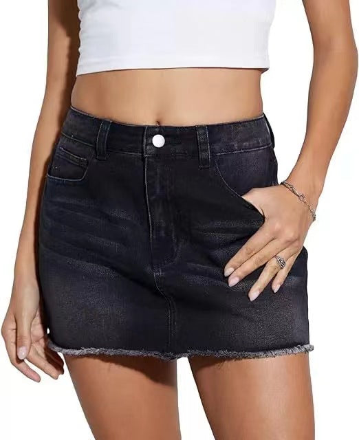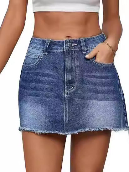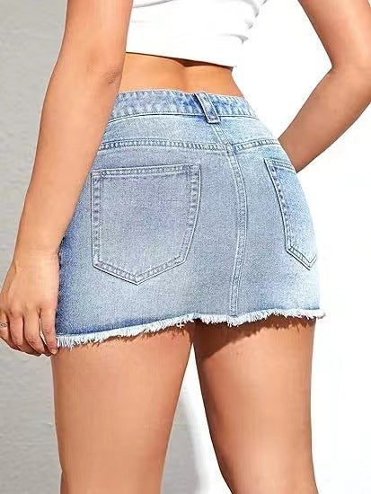 Summer Fashion Versatile Low-Waist A-Line Mini Denim Skirt for Women