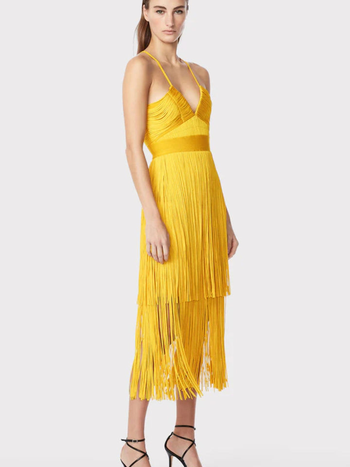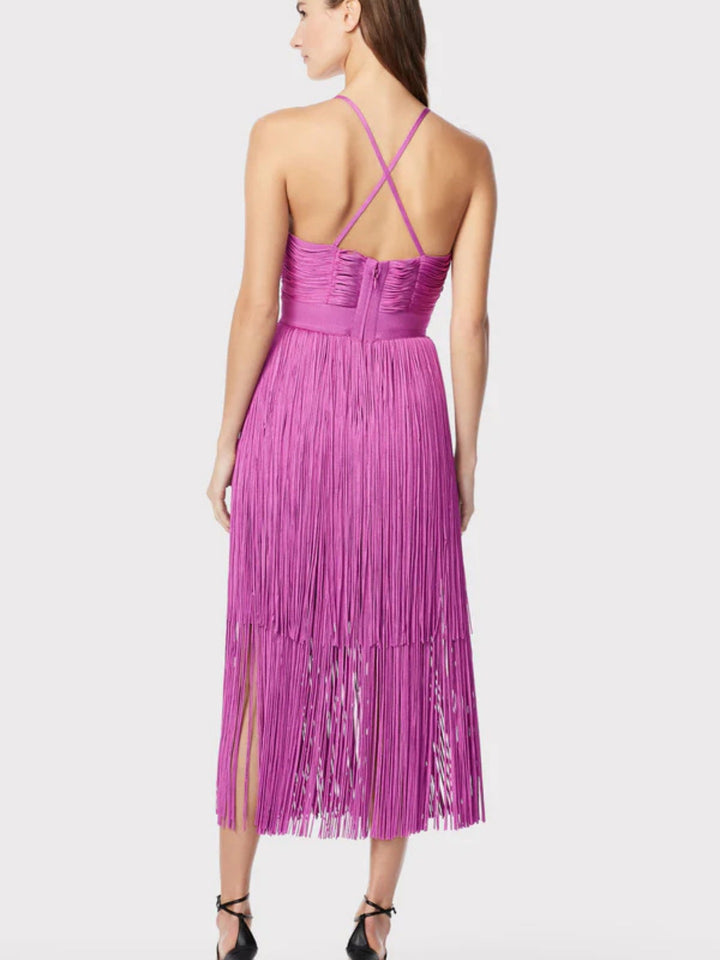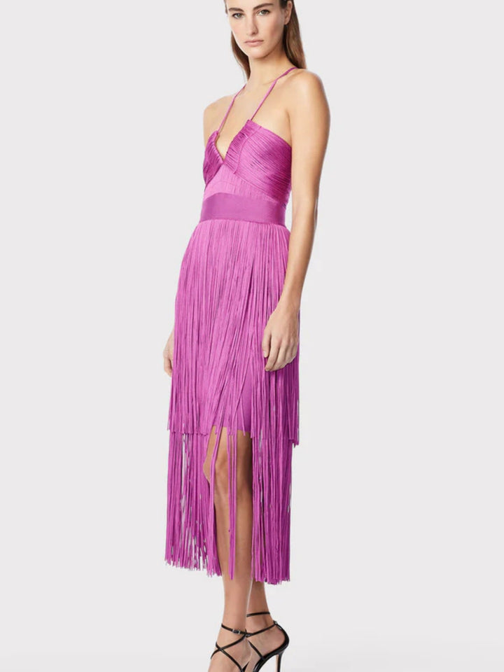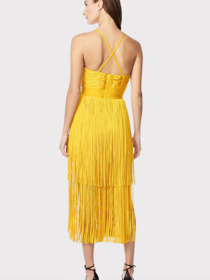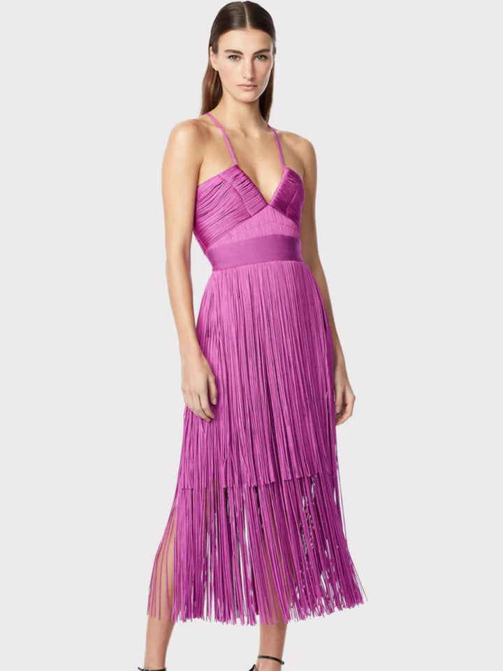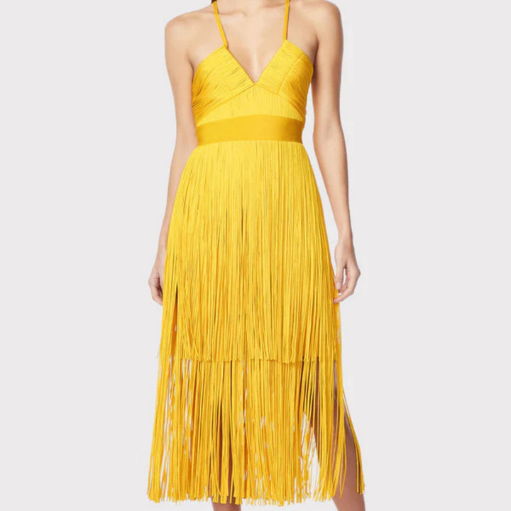 Summer French Elegant Fringed Deep V-Neck Halter Dress for Women