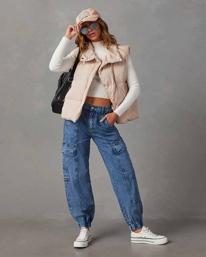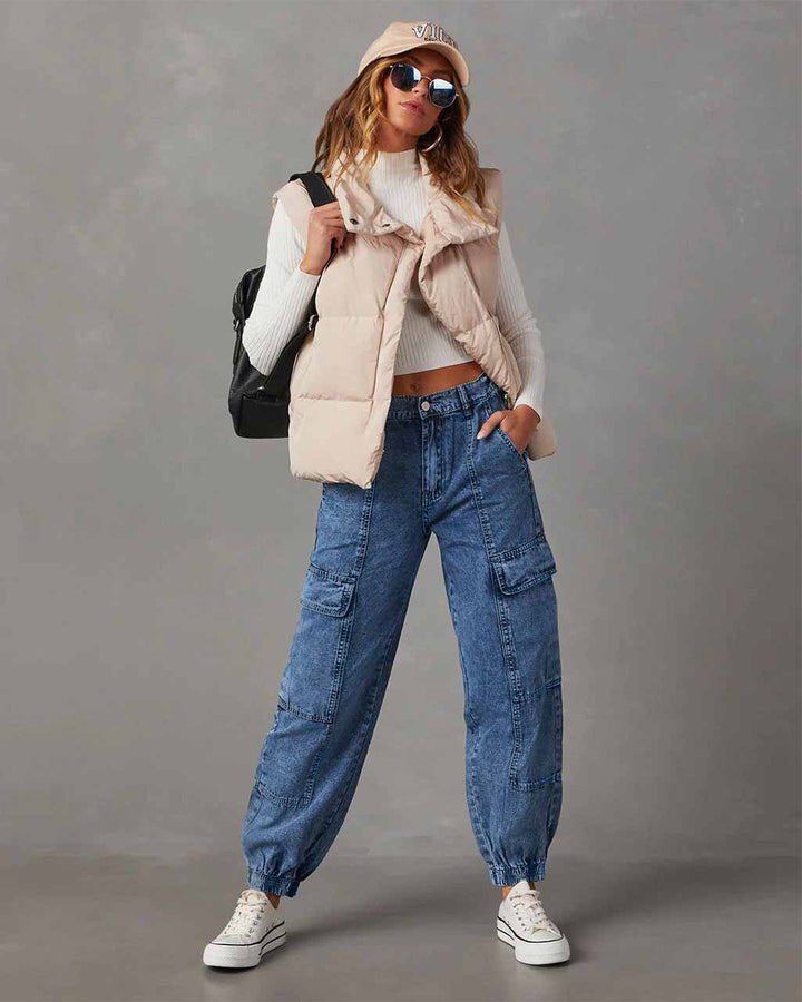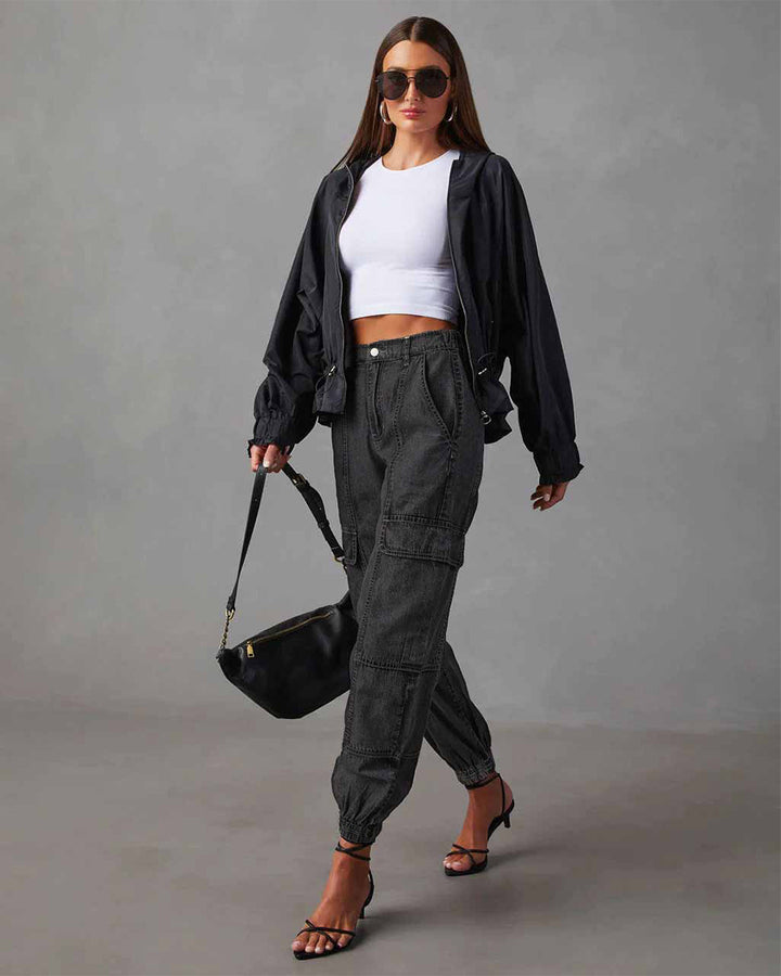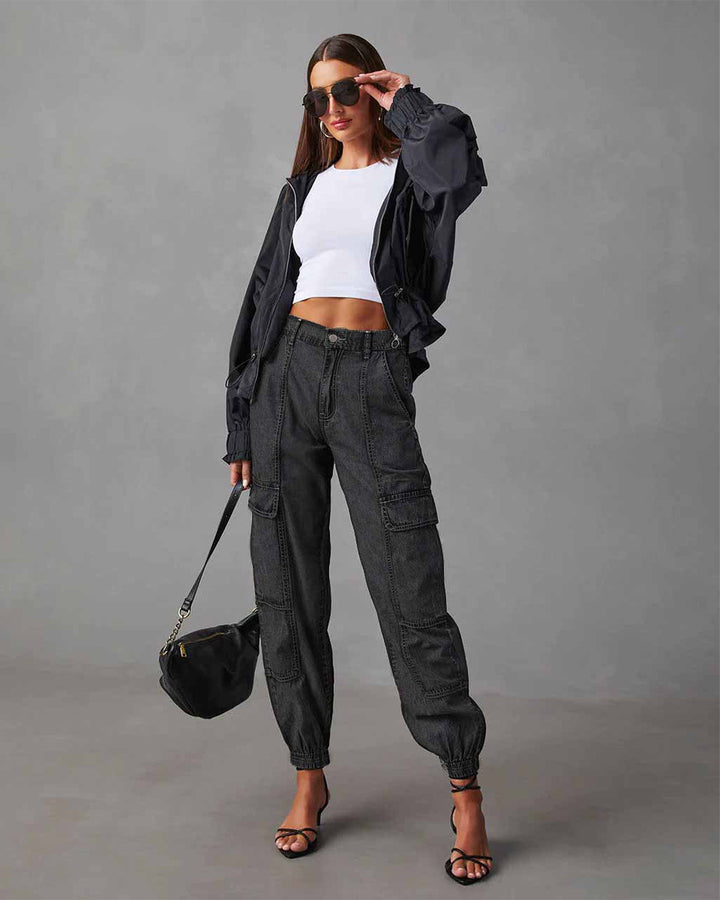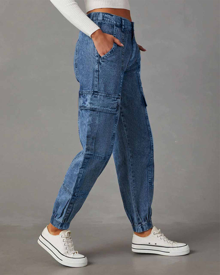 Summer Low-Waist Daily Ankle-Cut Denim Pant with Pockets for Women