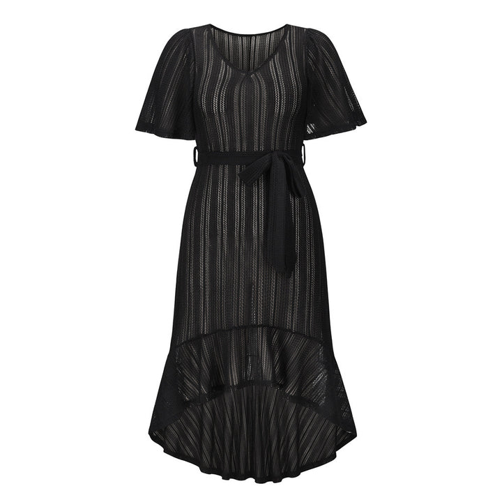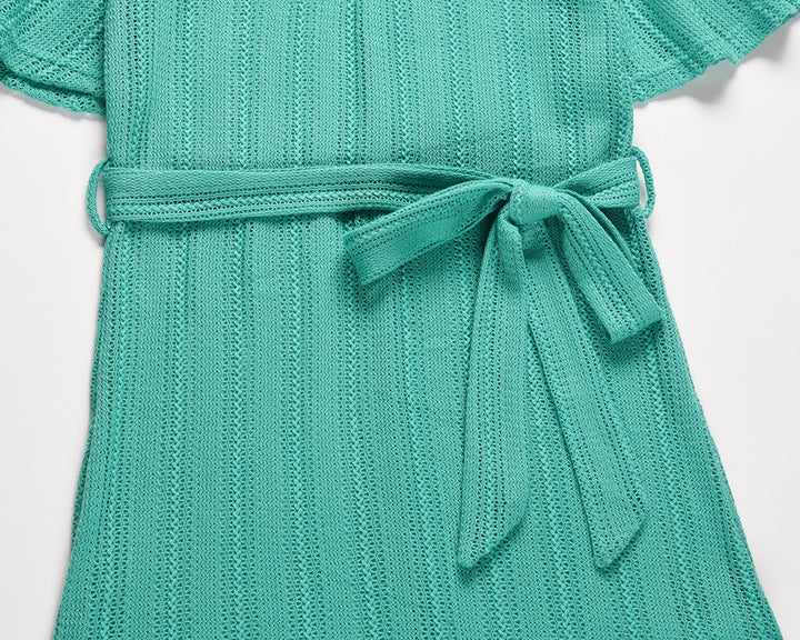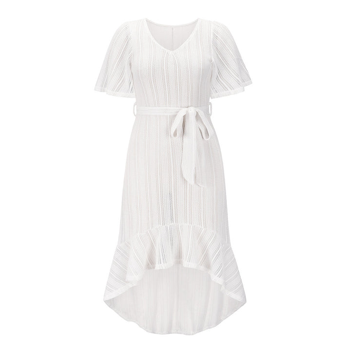 Summer New v-Neck Sexy Summer Beach Hollow Belt Dress