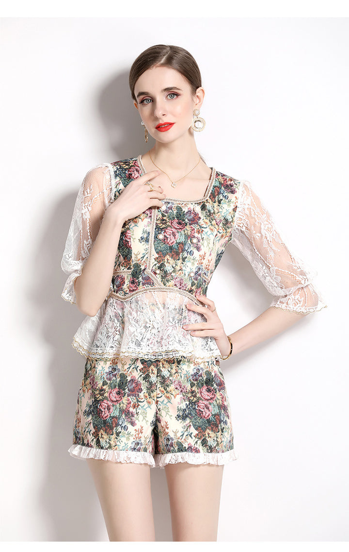 Summer new vintage top and shorts two-piece set