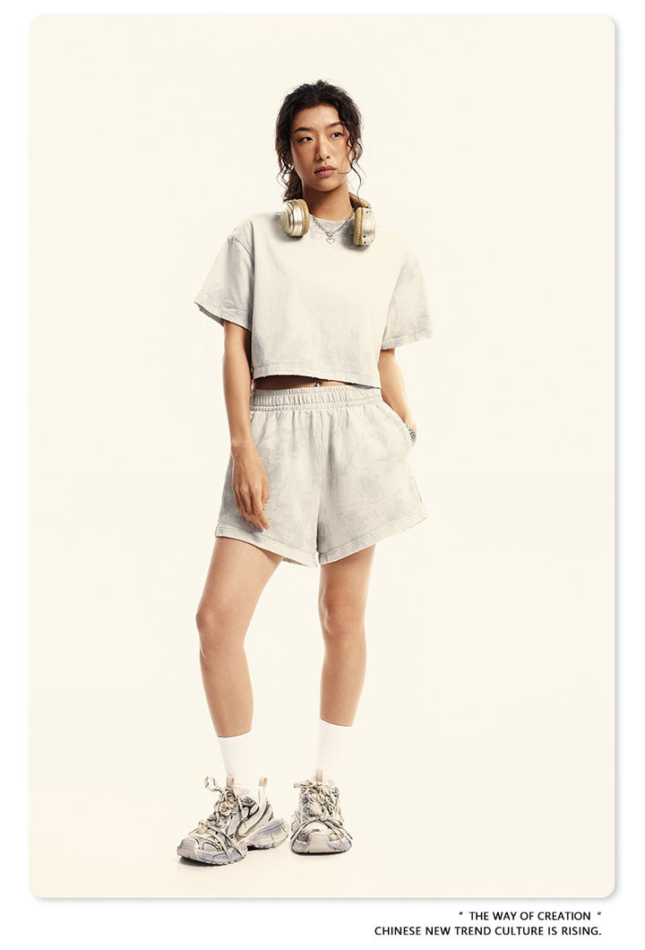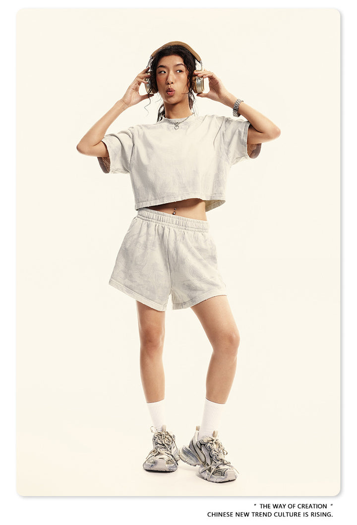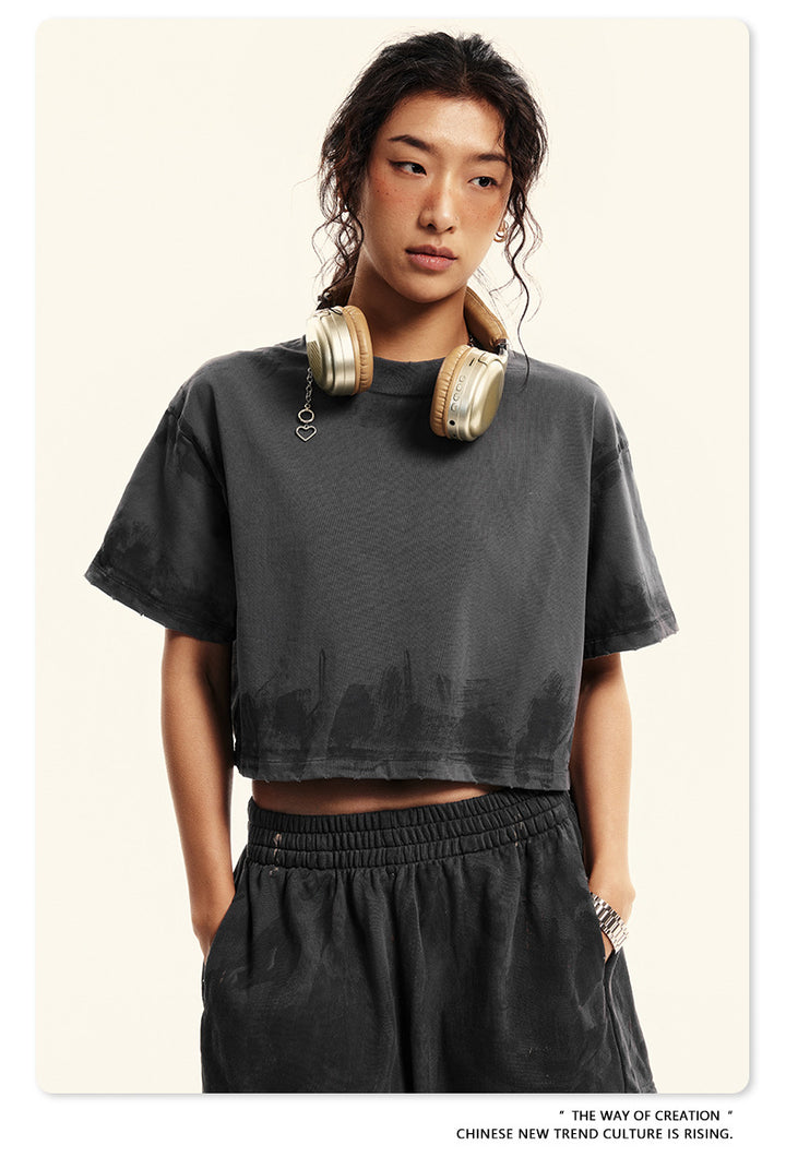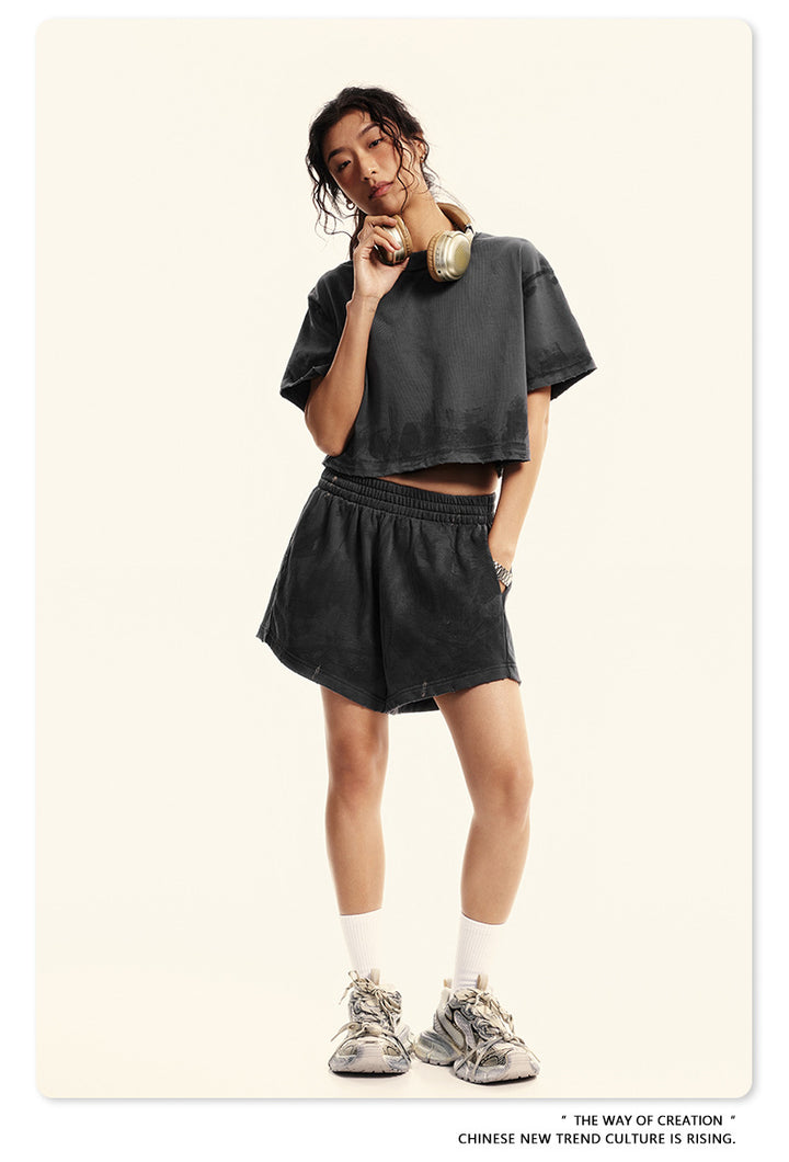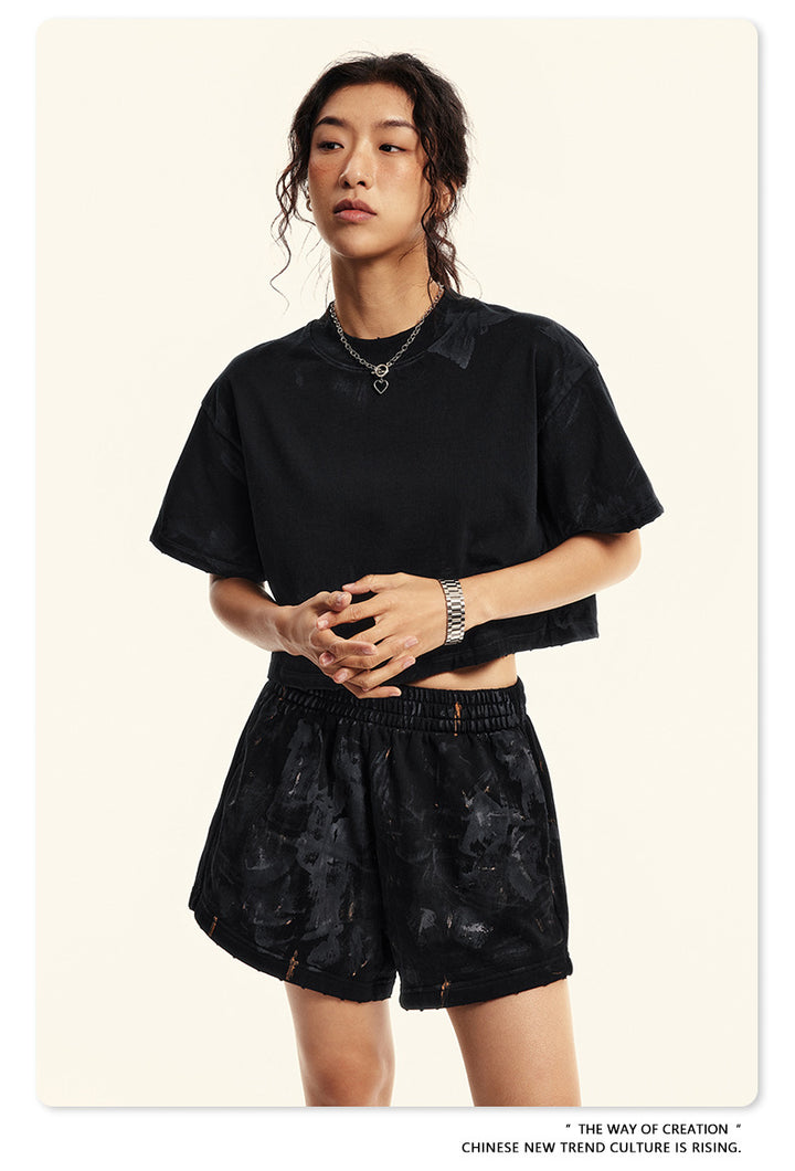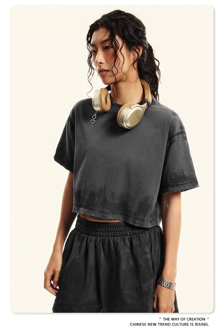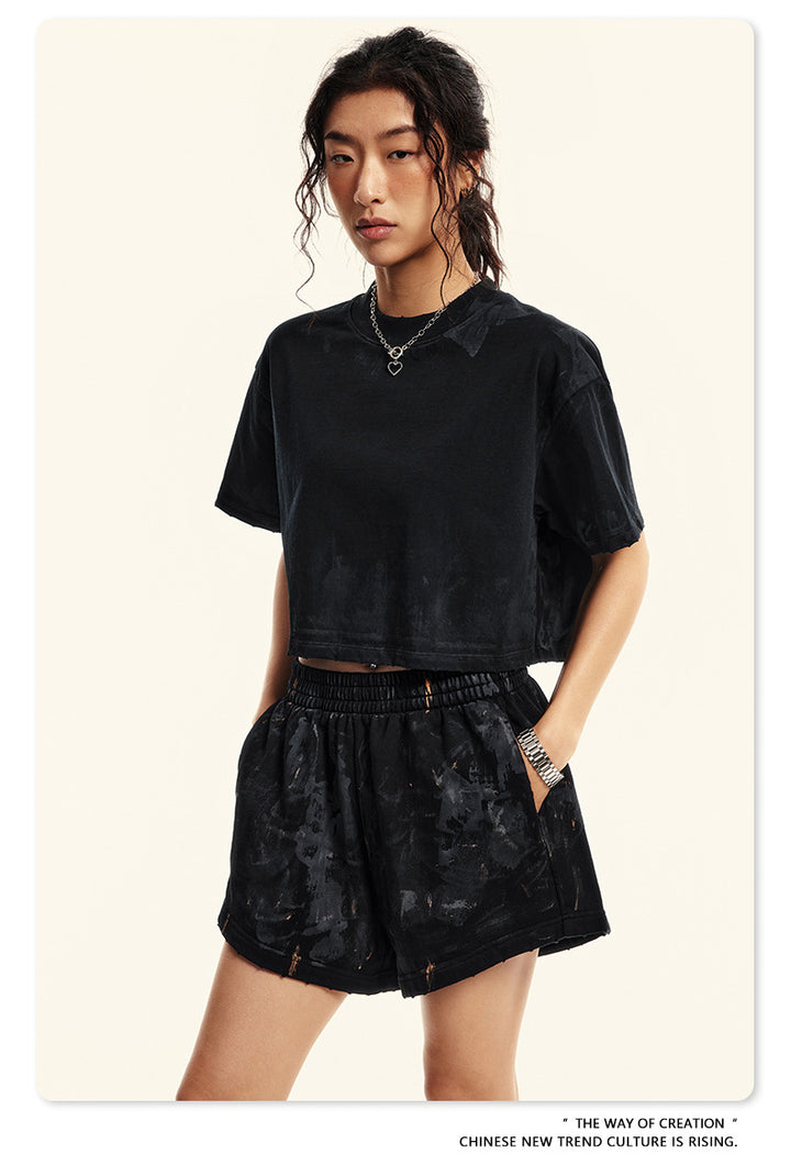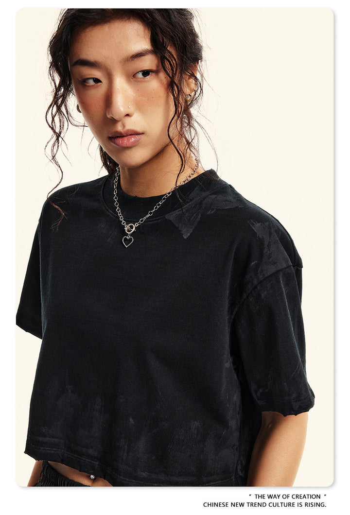Summer Solid-color Sweat-absorbing Mud Dyed Aged Off-the-shoulder Top