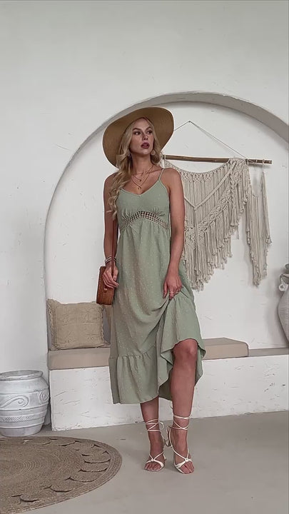 Summer V-Neck Cutout Fresh and Light Style Long Slip Dress for Women