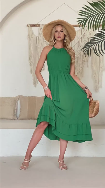 Summer Waisted Layered Holiday-Style Long Halter Dress for Women