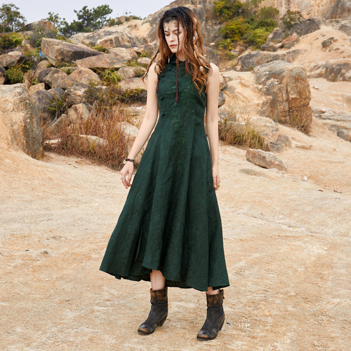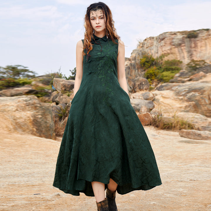 Summer's New Vintage Sleeveless Dress with Large Swing Lapels
