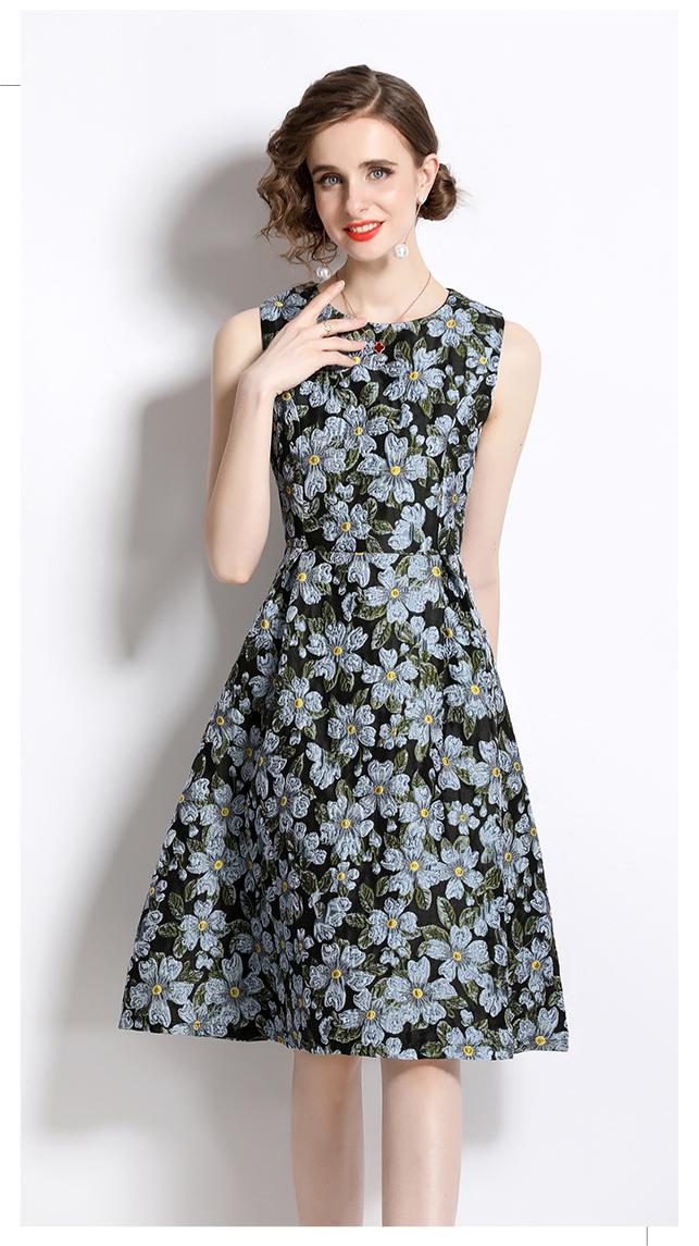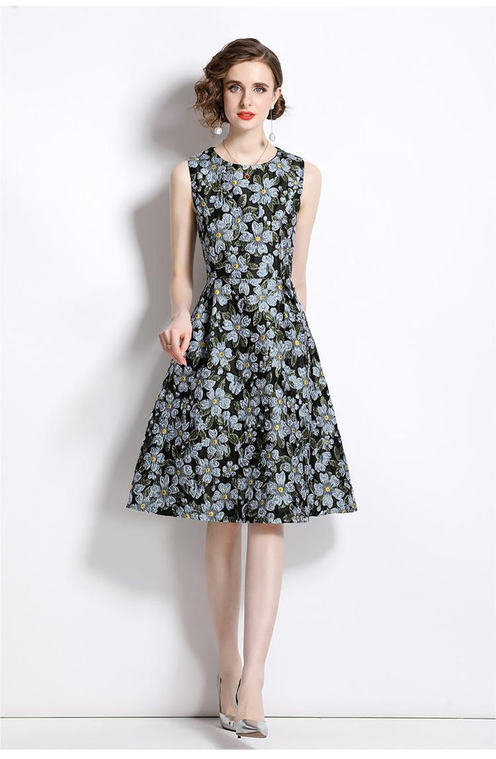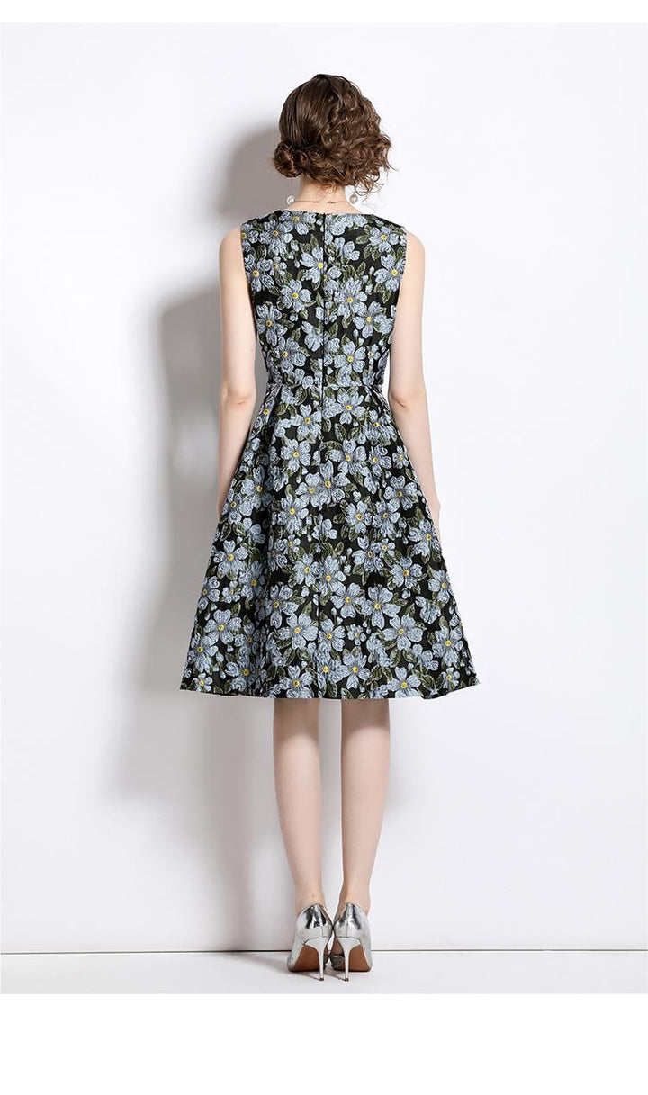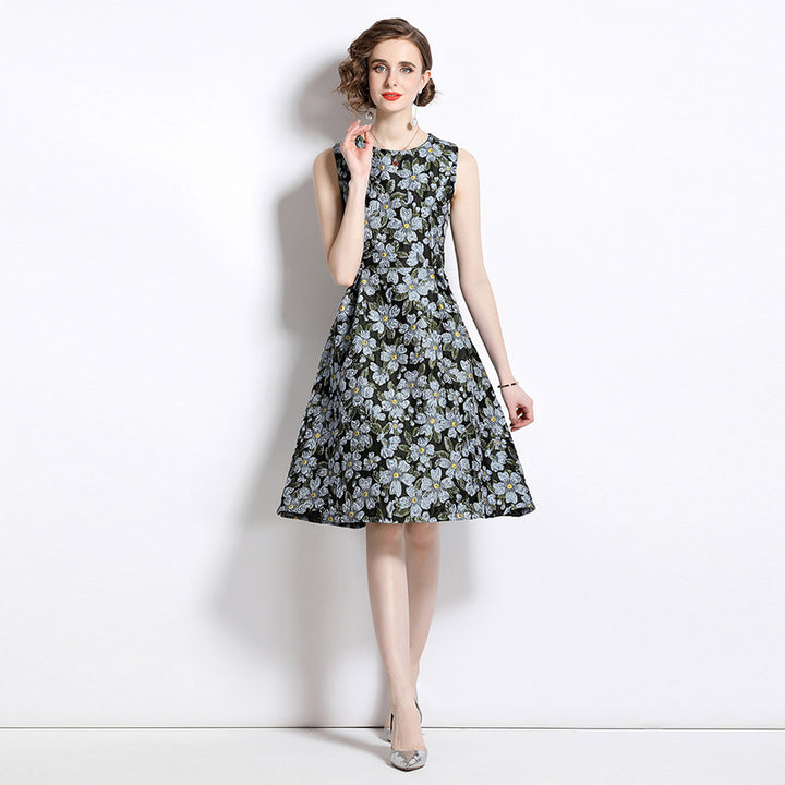 Sundress Socialite Temperament Jacquard Crewneck Sleeveless Mid-Length Dress