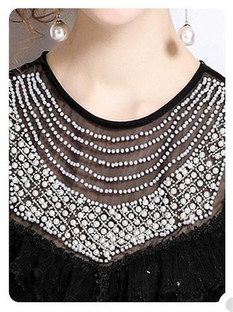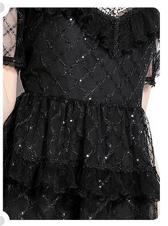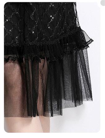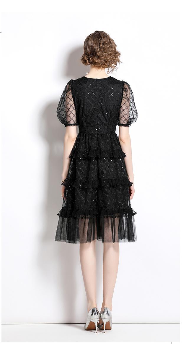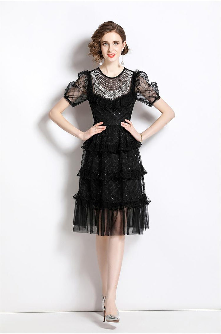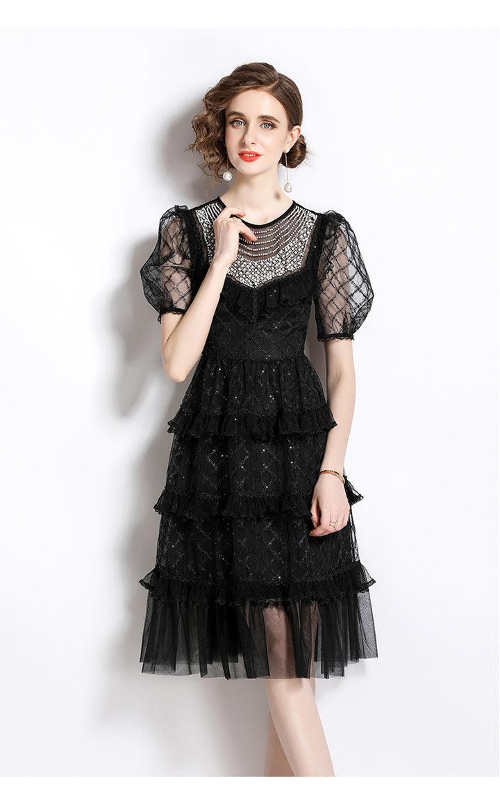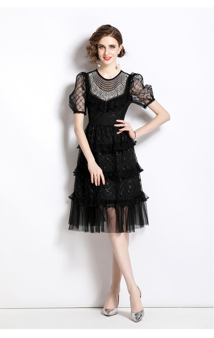 Temperament Fashion Gauze Beaded Piece Embroidered Bubble Sleeve Lace Cake Skirt Dress