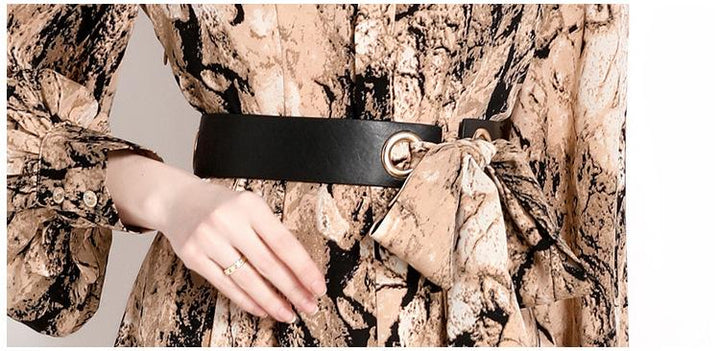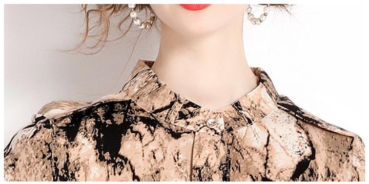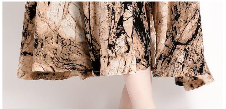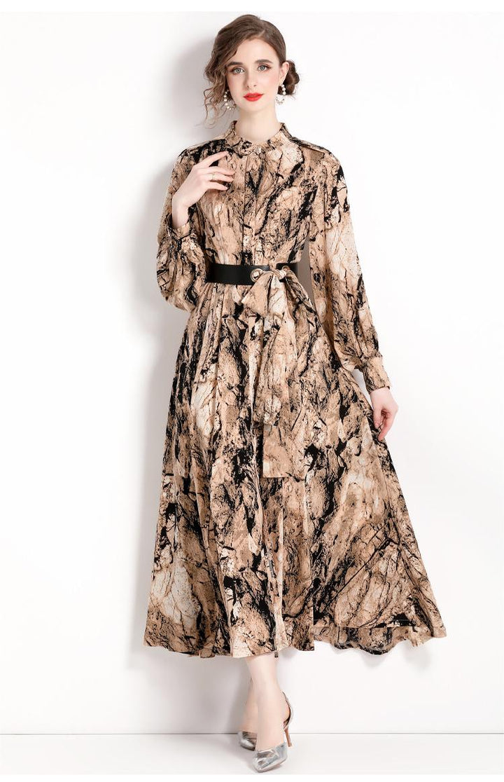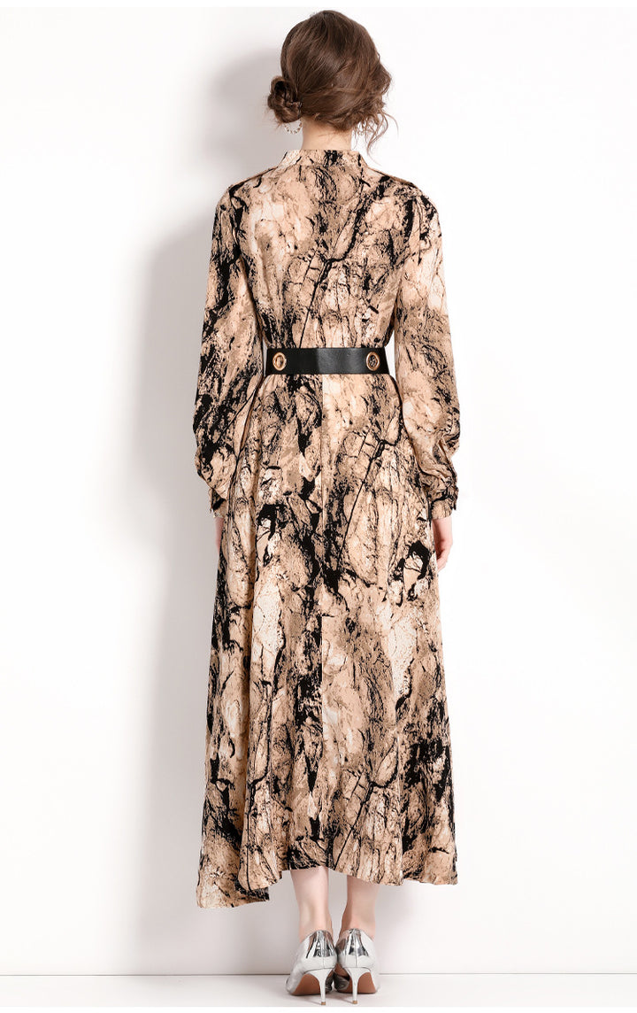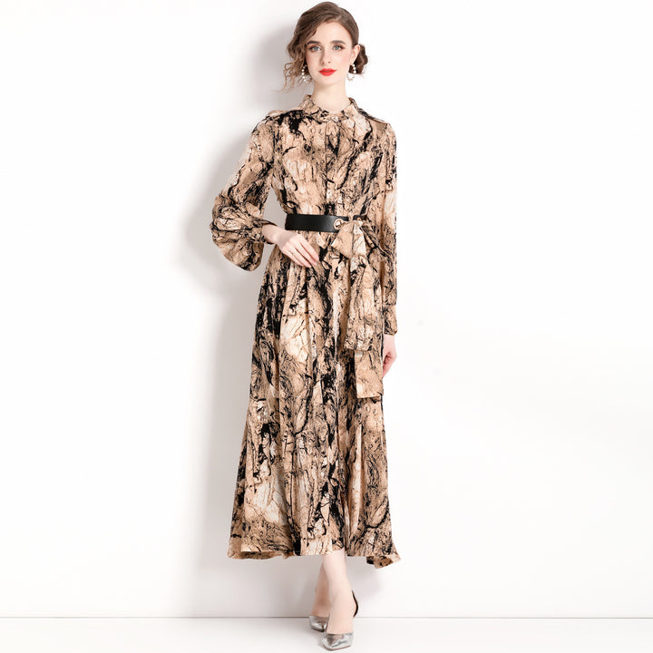 Temperament Fashion Vintage Print Long-Sleeved Dress Slim and Slimming Long Skirt