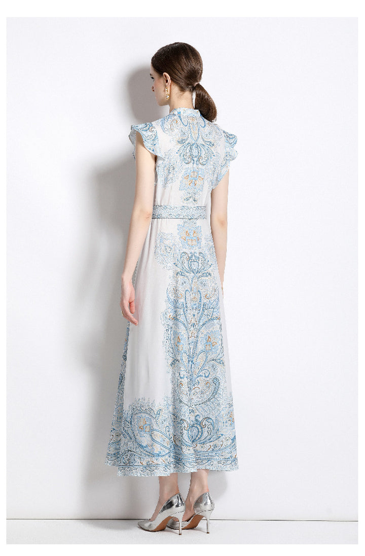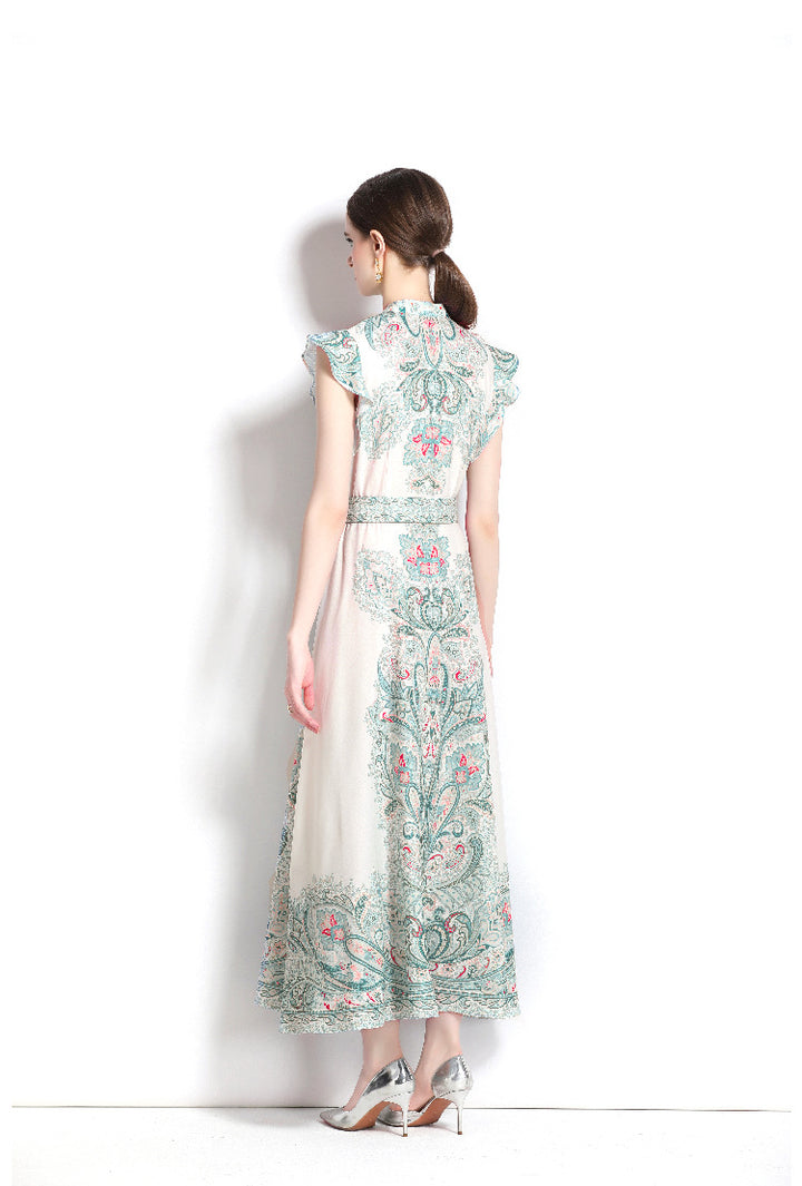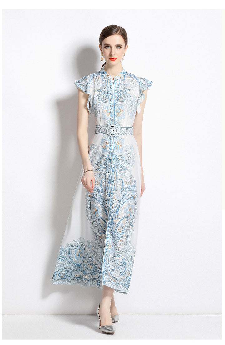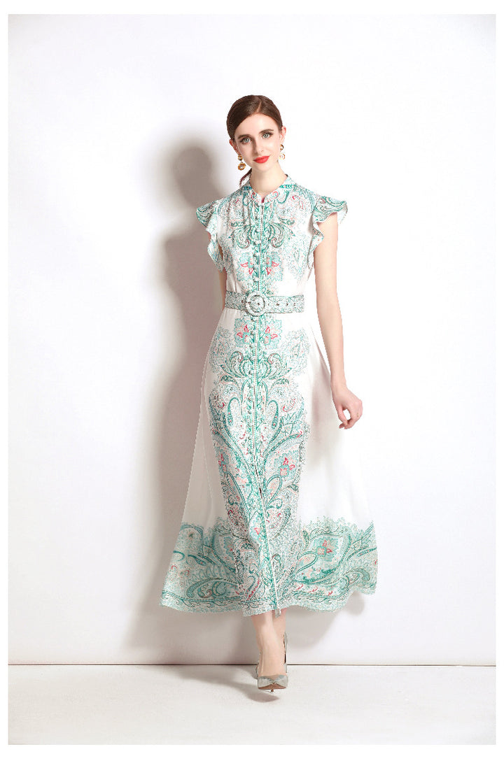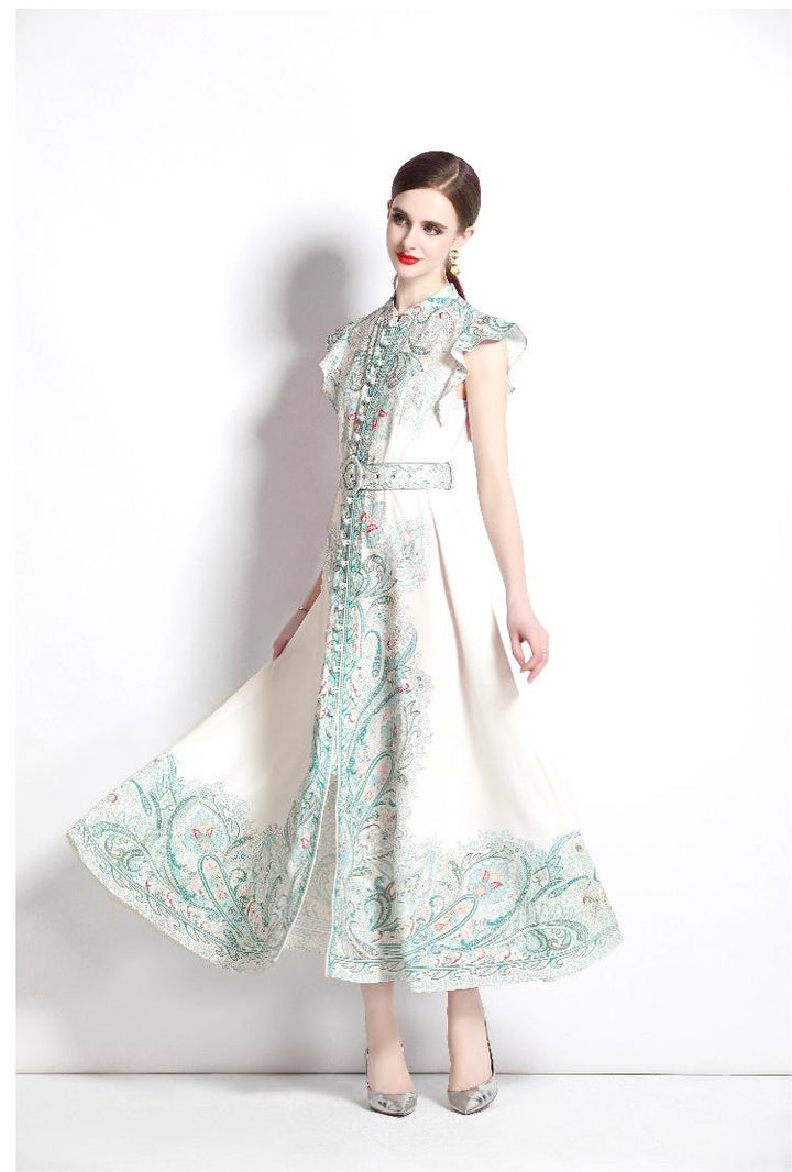 Vintage Fashion Print Dress Single Breasted Large Swing A-Line Skirt