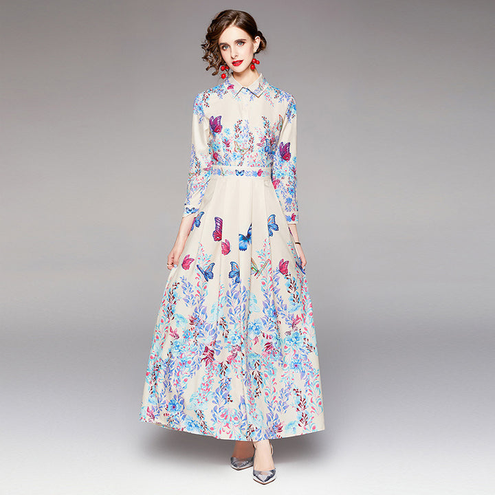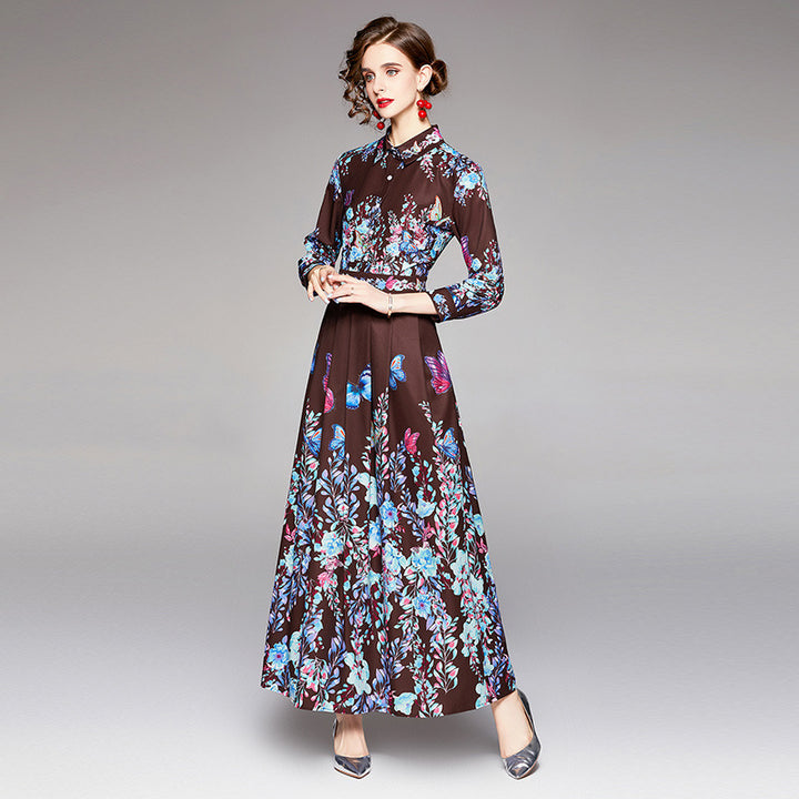 Vintage Print Lapel Dress