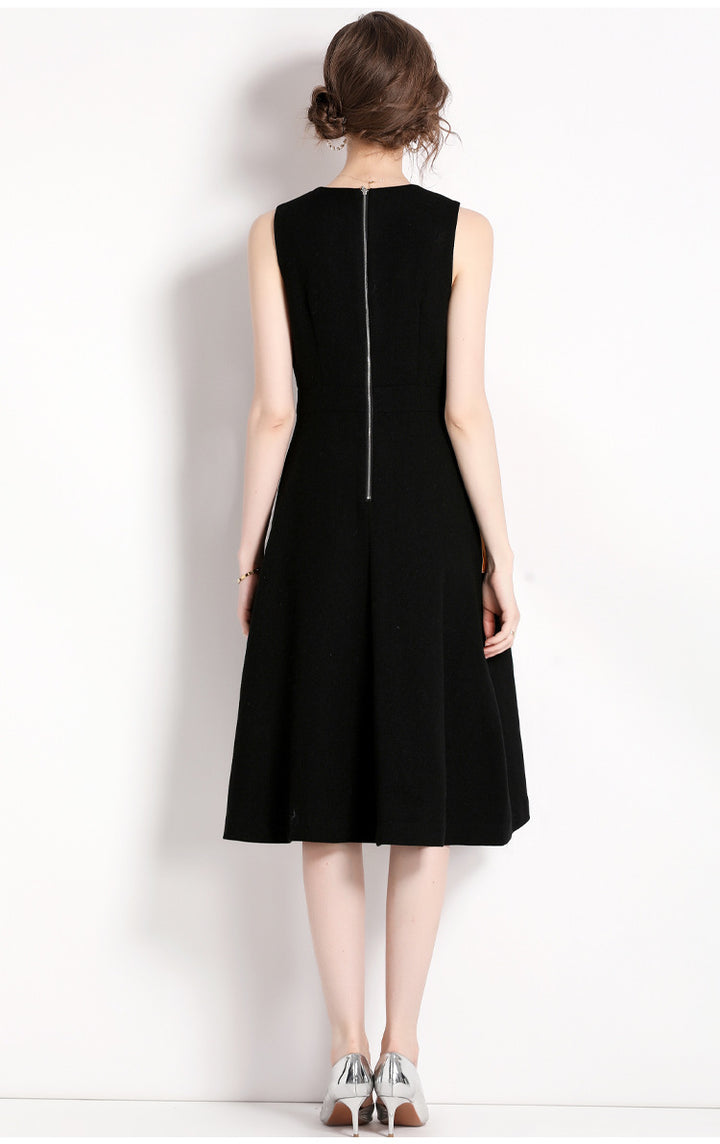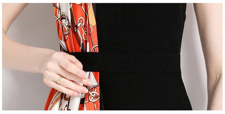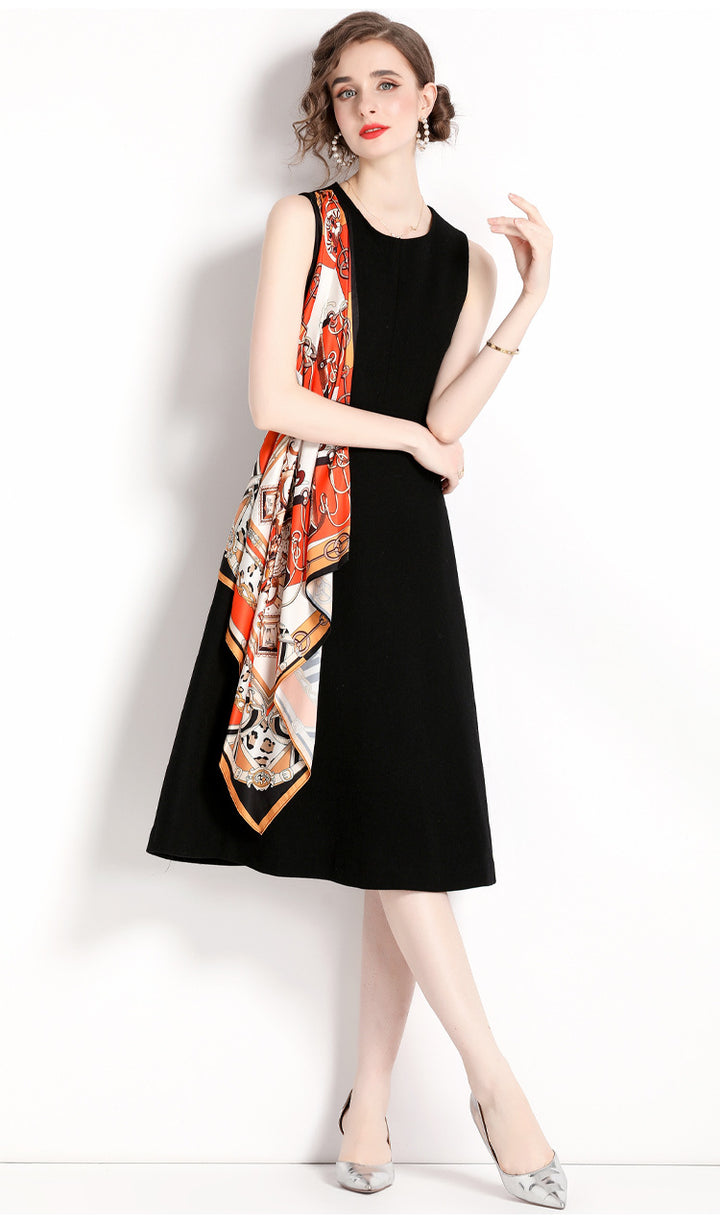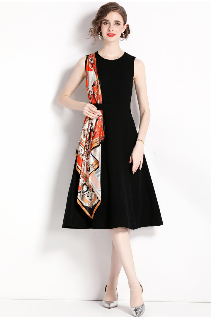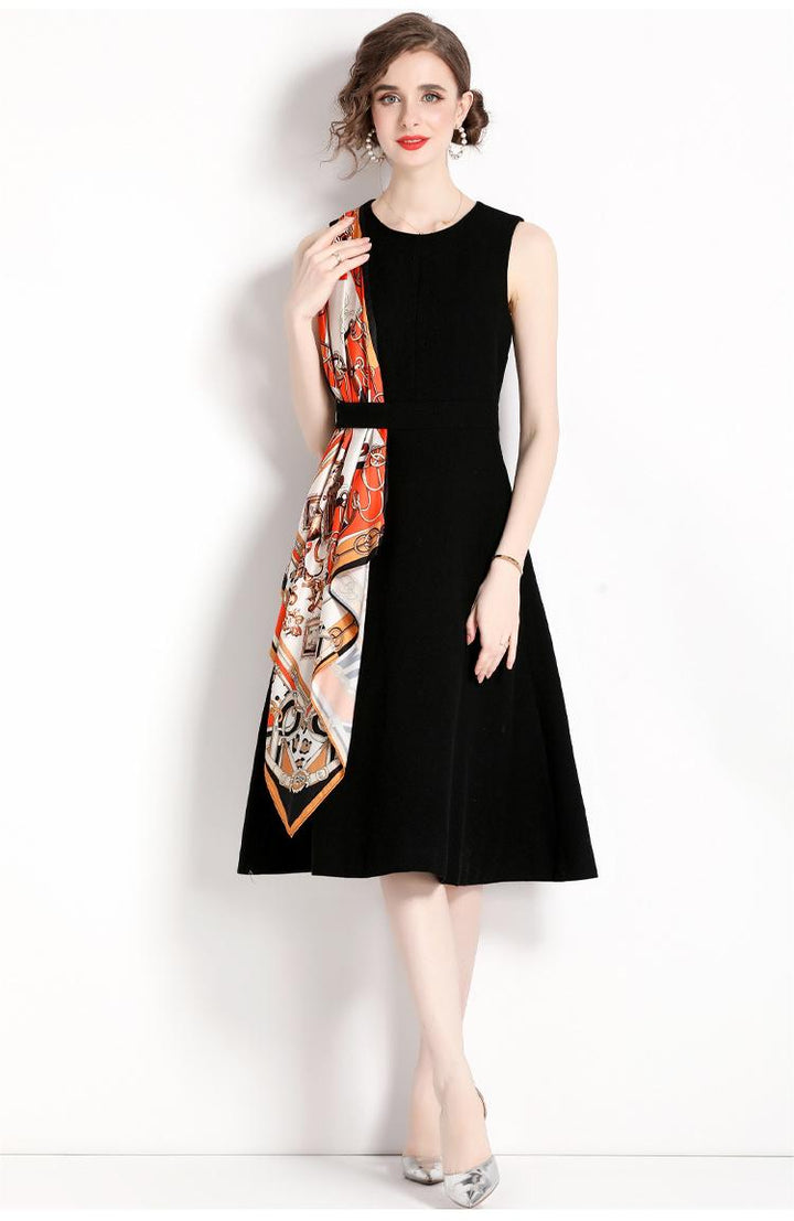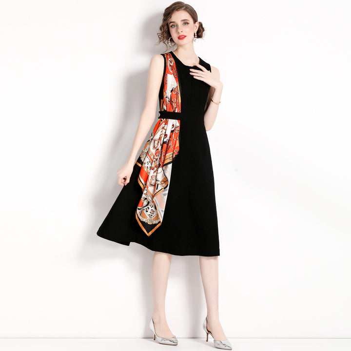 Vintage Print Patchwork High-Waisted Slim Sleeveless Dress A-Line MIDI Skirt