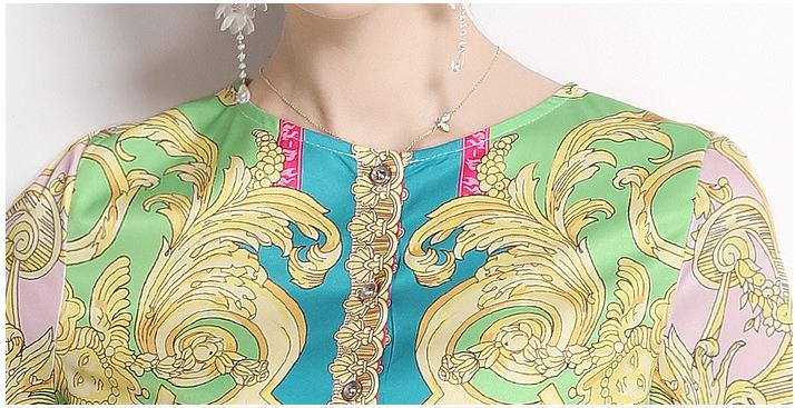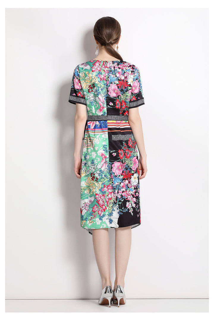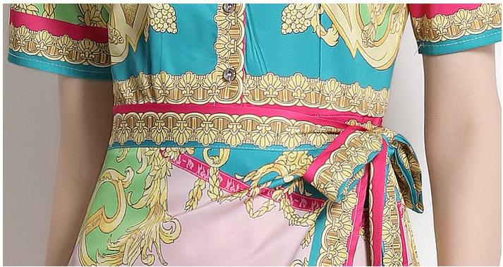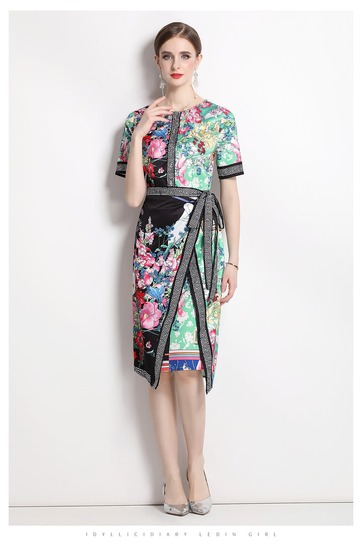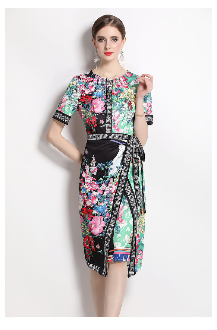 Vintage Print Print MIDI Dress with Waist Drawstring for Slimming