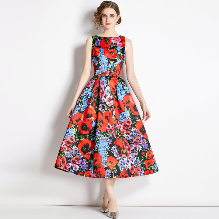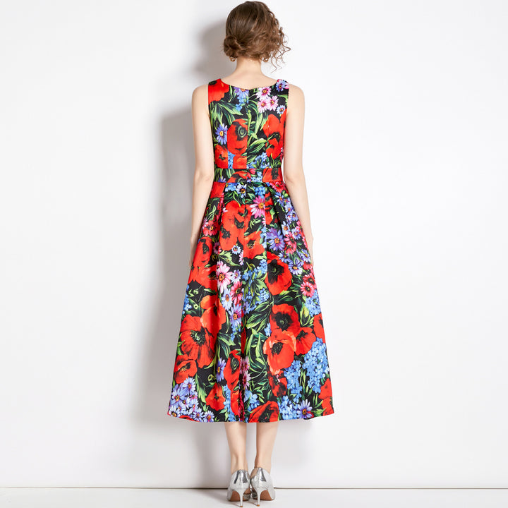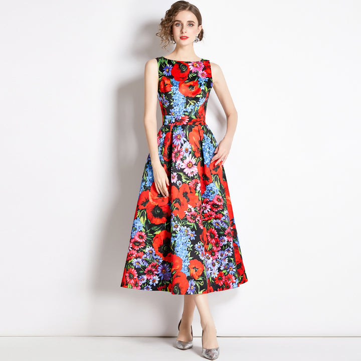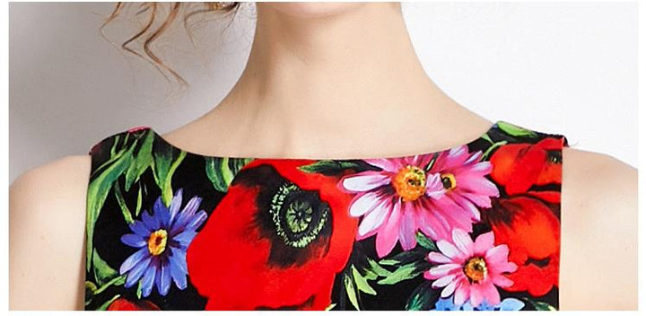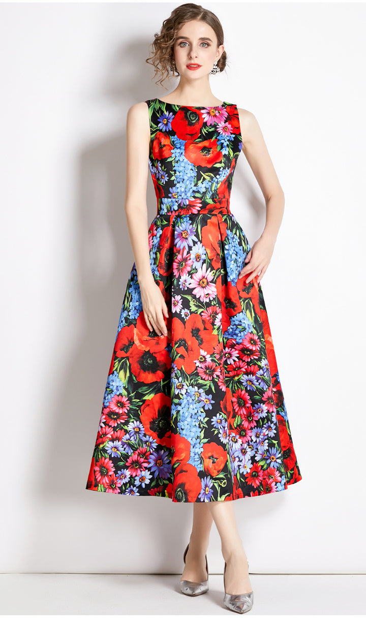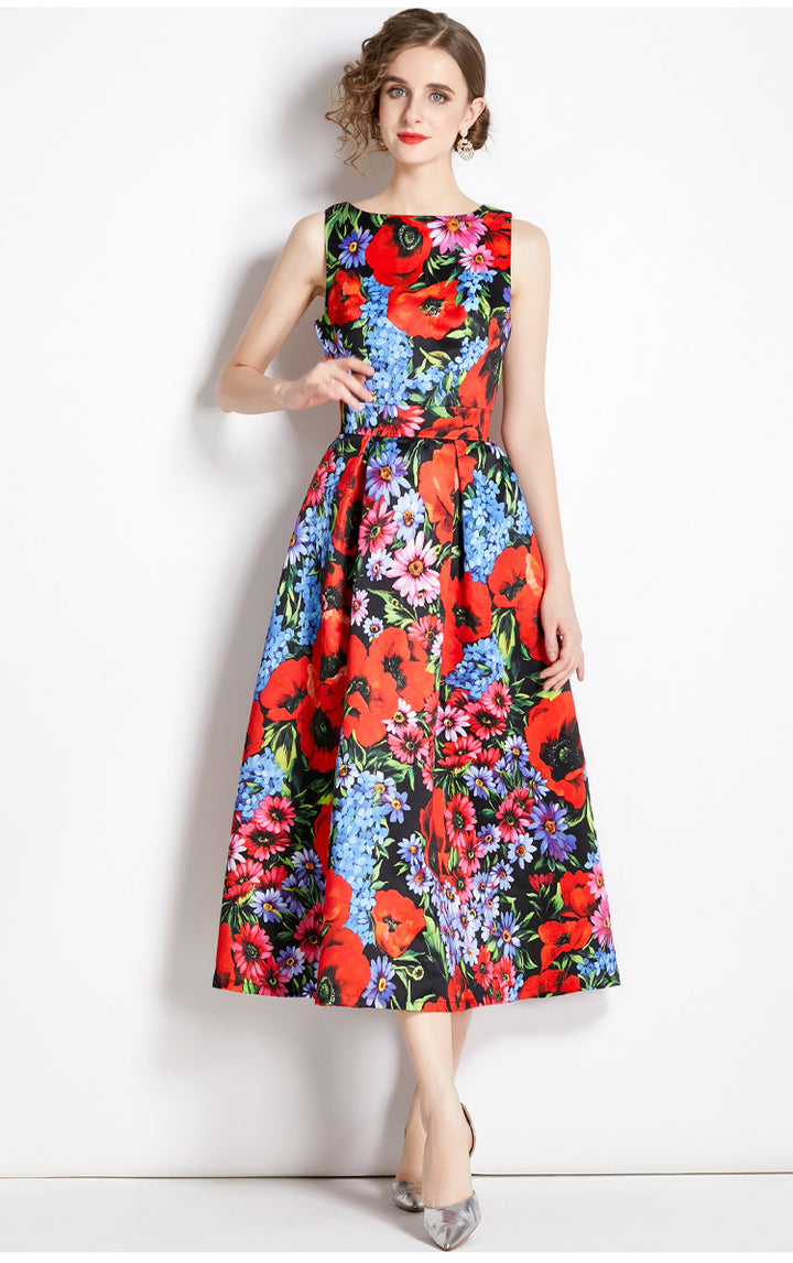 Vintage Print Sleeveless Dress