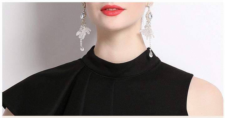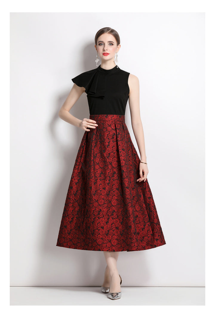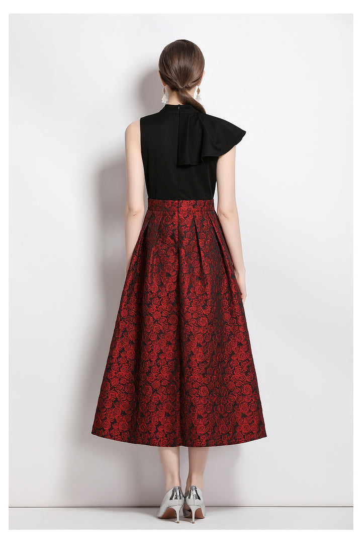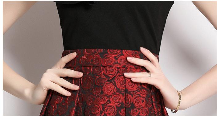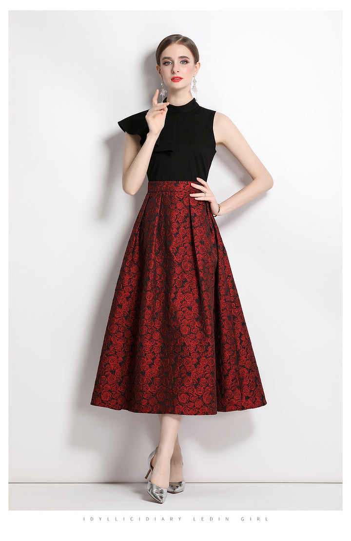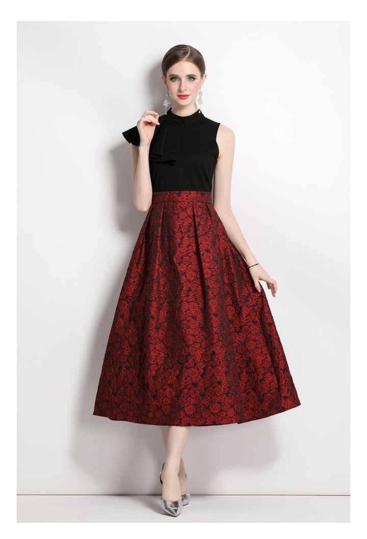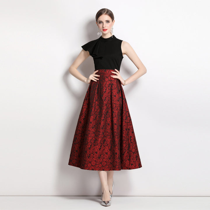 Vintage Stand-Up Collar Peplum Slim Slim Patchwork Jacquard Long Skirt Dress