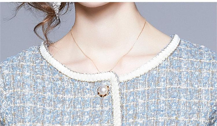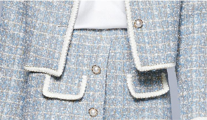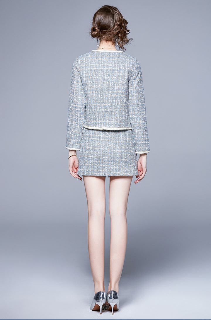 Women's Tweed Long Sleeve Coat and Short Skirt Temperament Two Piece Suit Skirt